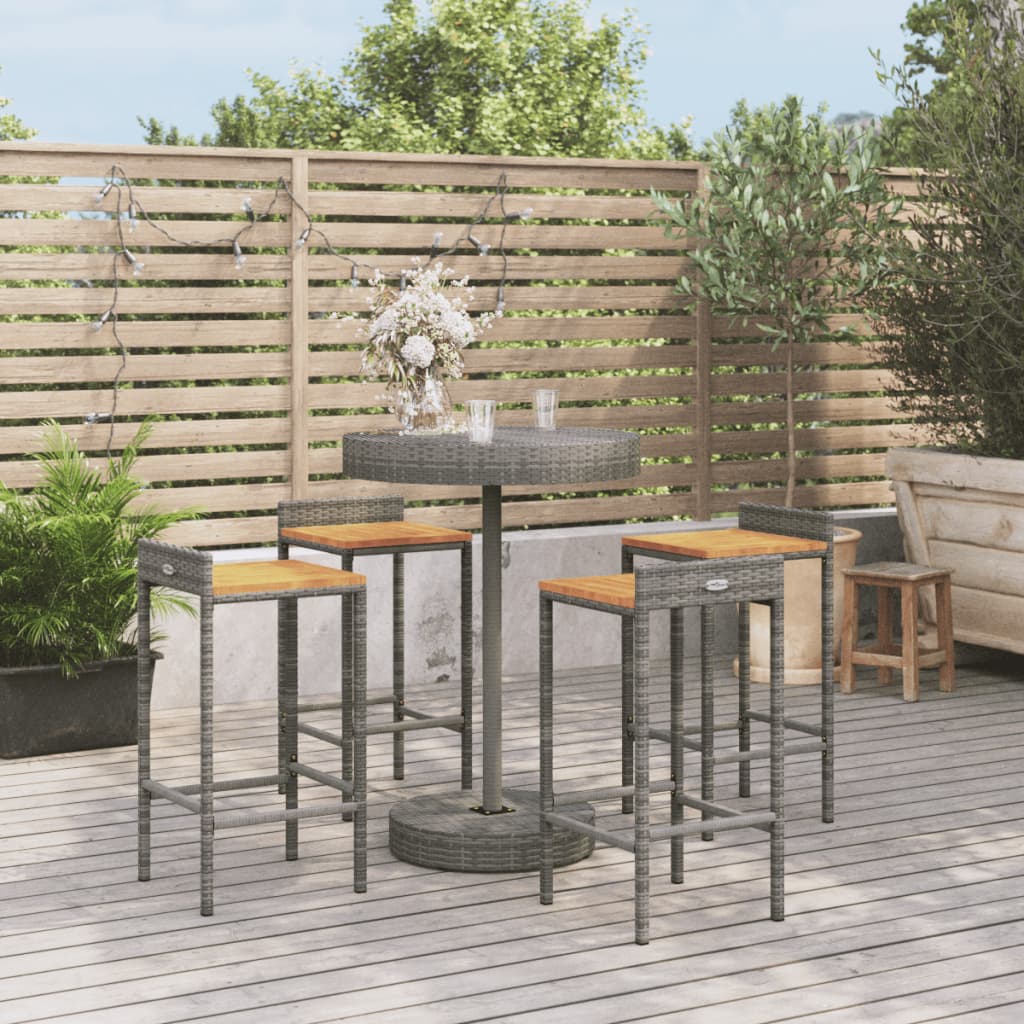 Dieses trendige Gartenbar-Set vereint Stil und Funktionalität und wird ein echter Hingucker in deinem Garten, auf deiner Terrasse oder in jedem anderen Außenbereich sein. Wetterfestes Material: PE-Rattan, auch als Poly Rattan bekannt, ist witterungsbeständig und pflegeleicht. Seine Oberfläche weist lange Zeit eine ansprechende Optik auf. Es bietet hohe Qualität, Komfort und einen ästhetisches Look.Komfortable Sitzgelegenheit: Der Barhocker ist mit einer integrierten Fußstütze ausgestattet, um dir höchsten Sitzkomfort zu bieten. Die Sitzfläche aus Holz verleiht dem Hocker eine natürliche und angenehme Optik und sorgt für Stabilität.Praktischer Tisch: Der runde Bartisch bietet den idealen Platz für Getränke, Snacks und Lieblingsdekorationen.Robuster und stabiler Rahmen: Dank der pulverbeschichteten Stahlrahmens ist das Bar-Set robust, stabil und für den täglichen Einsatz im Freien geeignet.Breite Anwendung: Stehtisch und Hocker sorgen mit ihrem außergewöhnlichen Design für eine angenehme Optik und fügen sich harmonisch in jede Umgebung ein. Gut zu wissen:Um die Montage so einfach wie möglich zu machen, wird jedes Produkt mit einer Anleitung geliefert.Hinweis:Damit deine Gartenmöbel lange schön bleiben, empfehlen wir dir, sie mit einer wasserdichten Hülle zu schützen.