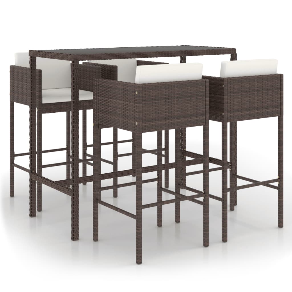 An diesem stilvollen Gartenbar-Set können Sie eine entspannte und angenehme Zeit mit Ihrer Familie und Ihren Freunden verbringen. Aus witterungsbeständigem und wasserdichtem PE-Rattan gefertigt, ist dieses Gartenbar-Set pflegeleicht, strapazierfähig und alltagstauglich. Das pulverbeschichtete Stahlgestell macht den Tisch und die Hocker robust und langlebig. Die Tischplatte aus gehärtetem Glas bietet den idealen Platz für Getränke, Speisen oder einige Dekoartikel. Die Fußstütze und die Kissen der Hocker sorgen für zusätzlichen Sitzkomfort. Dank ihrer Leichtbauweise lassen sich alle Artikel einfach umstellen. Hinweis: Um die Lebensdauer Ihrer Gartenmöbel zu verlängern, empfehlen wir Ihnen, diese regelmäßig zu reinigen und im Freien vor Niederschlägen oder starken Sonnenstrahlen zu schützen.Reinigung: Verwenden Sie eine milde Seifenlösung.Lagerung: Wenn möglich, an einem kühlen, trockenen Ort im Innenbereich lagern. Wenn das Produkt im Freien gelagert wird, schützen Sie es mit einer wasserdichten Abdeckung. Wischen und trocknen Sie das überschüssige Wasser oder den Schnee nach Regen oder Schneefall von ebenen Flächen. Sorgen Sie für eine ausreichende Luftzirkulation, um feuchtigkeitsbedingte Schäden zu vermeiden.