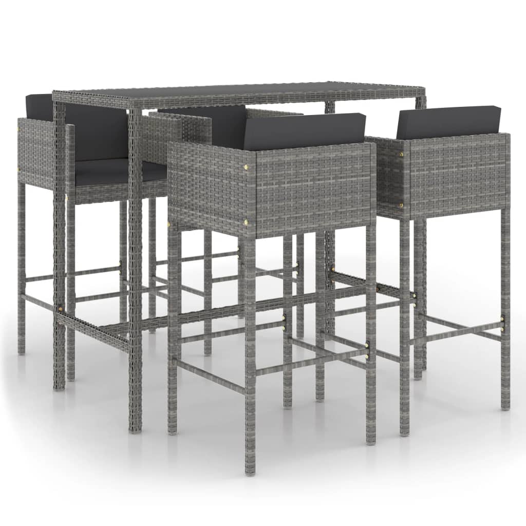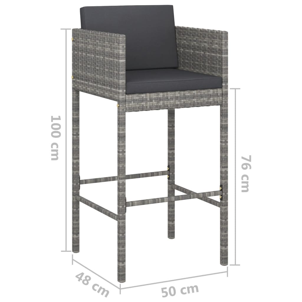 An diesem stilvollen Gartenbar-Set können Sie eine entspannte und angenehme Zeit mit Ihrer Familie und Ihren Freunden verbringen. Aus witterungsbeständigem und wasserdichtem PE-Rattan gefertigt, ist dieses Gartenbar-Set pflegeleicht, strapazierfähig und alltagstauglich. Das pulverbeschichtete Stahlgestell macht den Tisch und die Hocker robust und langlebig. Die Tischplatte aus gehärtetem Glas bietet den idealen Platz für Getränke, Speisen oder einige Dekoartikel. Die Fußstütze und die Kissen der Hocker sorgen für zusätzlichen Sitzkomfort. Dank ihrer Leichtbauweise lassen sich alle Artikel einfach umstellen. Hinweis: Um die Lebensdauer Ihrer Gartenmöbel zu verlängern, empfehlen wir Ihnen, diese regelmäßig zu reinigen und im Freien vor Niederschlägen oder starken Sonnenstrahlen zu schützen.Reinigung: Verwenden Sie eine milde Seifenlösung.Lagerung: Wenn möglich, an einem kühlen, trockenen Ort im Innenbereich lagern. Wenn das Produkt im Freien gelagert wird, schützen Sie es mit einer wasserdichten Abdeckung. Wischen und trocknen Sie das überschüssige Wasser oder den Schnee nach Regen oder Schneefall von ebenen Flächen. Sorgen Sie für eine ausreichende Luftzirkulation, um feuchtigkeitsbedingte Schäden zu vermeiden.