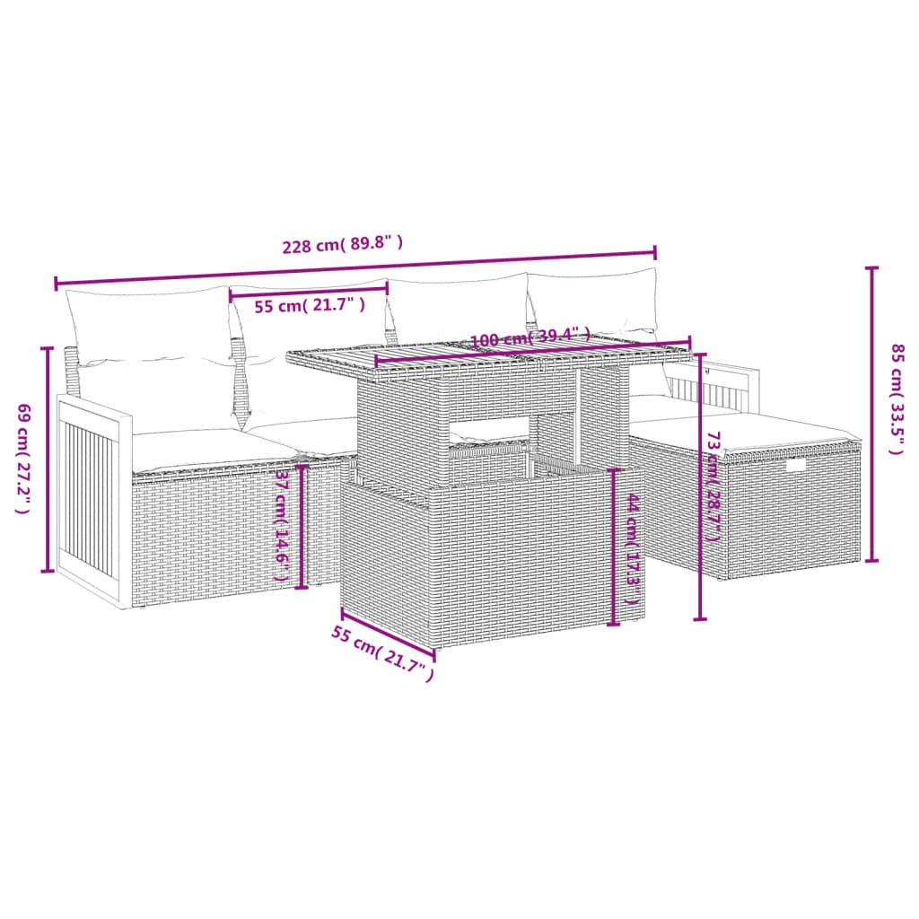 Diese Garten-Sofagarnitur ist die perfekte Ergänzung zu deinem Garten, deiner Terrasse oder deinem Innenhof. Sie bietet einen bequemen und einladenden Platz, um mit Familie und Freunden zu plaudern oder dich einfach nur zu entspannen und das Leben im Freien zu genießen. Langlebiges Material: PE-Rattan, auch als Poly Rattan bekannt, ist ein robustes, pflegeleichtes synthetisches Material, das die Optik von natürlichem Rattan aufweist. Es kennzeichnet sich durch ein geringes Eigengewicht und lässt sich einfach reinigen. Aufgrund seiner Haltbarkeit und Witterungsbeständigkeit wird es häufig bei der Herstellung von Gartenmöbeln verwendet.Verstellbare Tischplatte: Die Tischplatte lässt sich anheben, um den Gartentisch höher zu machen und ihn von einem Couchtisch in einen Esstisch zu verwandeln. Der Tisch eignet sich daher perfekt für Gäste oder Mahlzeiten im Freien.Abnehmbarer und waschbarer Bezug: Diese Sitzkissen verfügen über abnehmbare Bezüge für einfaches Waschen und Pflegen.Modulares Design: Dank des modularen Designs lassen sich die Gartenmöbel völlig flexibel und einfach umstellen, um deinen Außenbereich ganz individuell zu gestalten. Gut zu wissen:Wir empfehlen dir, deine Gartenmöbel mit einer wasserdichten Hülle zu schützen, um lange Zeit eine ansprechende Optik aufzuweisen.