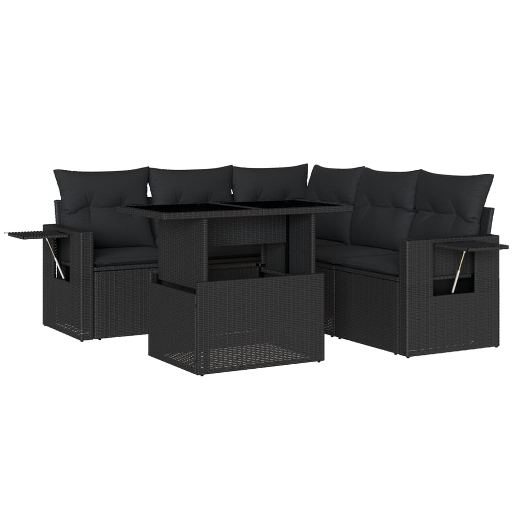 Diese Garten-Sofagarnitur ist die perfekte Ergänzung zu deinem Garten, deiner Terrasse oder deinem Innenhof. Sie bietet einen bequemen und einladenden Platz, um mit Familie und Freunden zu plaudern oder dich einfach nur zu entspannen und das Leben im Freien zu genießen. Langlebiges Material: PE-Rattan, auch als Poly Rattan bekannt, ist ein robustes, pflegeleichtes synthetisches Material, das die Optik von natürlichem Rattan aufweist. Es kennzeichnet sich durch ein geringes Eigengewicht und lässt sich einfach reinigen. Aufgrund seiner Haltbarkeit und Witterungsbeständigkeit wird es häufig bei der Herstellung von Gartenmöbeln verwendet.Verstellbare Tischplatte: Die Tischplatte lässt sich anheben, um den Gartentisch höher zu machen und ihn von einem Couchtisch in einen Esstisch zu verwandeln. Er eignet sich daher perfekt für Gäste oder Mahlzeiten im Freien.Praktischer Beistelltisch: Diese Gartengarnitur verfügt über klappbare Ablagen mit Gasfedern an den Armlehnen, auf denen du verschiedene Sachen griffbereit aufbewahren kannst. Bequemes Sitzerlebnis: Dieser Gartensessel mit dick gepolsterten Kissen bietet ein angenehmes Sitzgefühl.Modulares Design: Dank des modularen Designs lassen sich die Gartenmöbel völlig flexibel und einfach umstellen, um deinen Außenbereich ganz individuell zu gestalten. Gut zu wissen:Wir empfehlen dir, deine Gartenmöbel mit einer wasserdichten Hülle zu schützen, um lange Zeit eine ansprechende Optik aufzuweisen.
