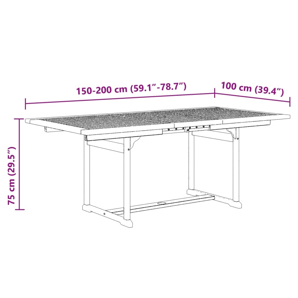 - Abmessungen: (150 - 200) x 100 x 75 cm (L x B x H)