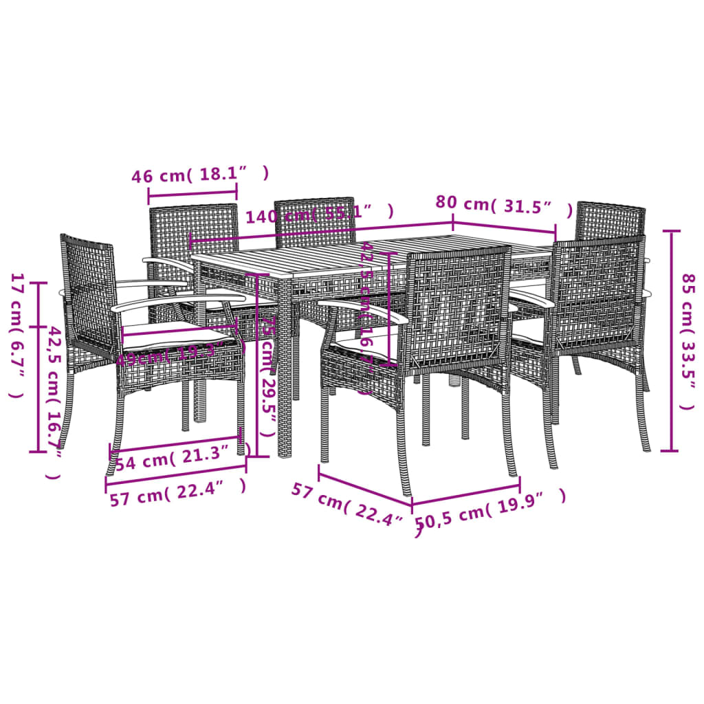 Diese Garten-Essgruppe ist eine ideale Wahl für Mahlzeiten im Freien oder einfach nur zum Entspannen im Garten, Hinterhof oder auf der Terrasse. Langlebiges Material: PE-Rattan, auch als Poly Rattan bekannt, ist ein robustes, pflegeleichtes synthetisches Material, das die Optik von natürlichem Rattan aufweist. Es kennzeichnet sich durch ein geringes Eigengewicht und lässt sich einfach reinigen. Aufgrund seiner Haltbarkeit und Witterungsbeständigkeit wird es häufig bei der Herstellung von Gartenmöbeln verwendet.Bequemes Sitzerlebnis: Dieser Gartensessel mit dick gepolsterten Kissen bietet ein angenehmes Sitzgefühl.Abnehmbarer und waschbarer Bezug: Diese Sitzkissen verfügen über abnehmbare Bezüge für einfaches Waschen und Pflegen.Stabile und pflegeleichte Tischplatte: Dieser Gartentisch besitzt eine Tischplatte aus Akazienholz, die robust und langlebig ist und sich leicht mit einem feuchten Tuch reinigen lässt.Robuster und stabiler Rahmen: Dank des pulverbeschichteten Stahlrahmens ist das Möbelstück robust, stabil und für den täglichen Einsatz im Außenbereich geeignet. Gut zu wissen:Wir empfehlen dir, deine Gartenmöbel mit einer wasserdichten Hülle zu schützen, um lange Zeit eine ansprechende Optik aufzuweisen.