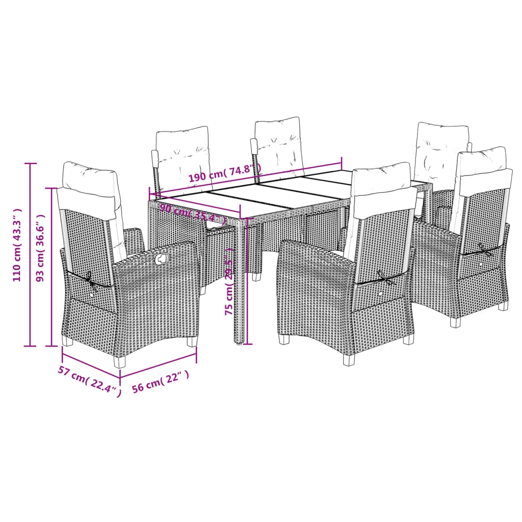 Diese Garten-Essgruppe ist eine ideale Wahl für Mahlzeiten im Freien oder einfach nur zum Entspannen im Garten, Hinterhof oder auf der Terrasse. Langlebiges Material: PE-Rattan, auch als Poly Rattan bekannt, ist ein robustes, pflegeleichtes synthetisches Material, das die Optik von natürlichem Rattan aufweist. Es kennzeichnet sich durch ein geringes Eigengewicht und lässt sich einfach reinigen. Aufgrund seiner Haltbarkeit und Witterungsbeständigkeit wird es häufig bei der Herstellung von Gartenmöbeln verwendet. Verstellbare Rückenlehne: Der Gartensessel ist mit einem Griff versehen. So kannst du die Rückenlehne durch Ziehen des Griffs verstellen und sie danach schnell wieder in ihre ursprüngliche Position bringen.Tischplatte aus Glas: Die Tischplatte des Gartentisches besteht aus starkem und langlebigem Hartglas, sodass sie leicht mit einem feuchten Tuch gereinigt werden kann und deinem Außenbereich einen Hauch von Eleganz verleiht. Bequemes Sitzerlebnis: Dieser Gartensessel mit dick gepolsterten Kissen bietet ein angenehmes Sitzgefühl. Abnehmbarer und waschbarer Bezug: Diese Sitzkissen verfügen über abnehmbare Bezüge für einfaches Waschen und Pflegen. Gut zu wissen:Wir empfehlen dir, deine Gartenmöbel mit einer wasserdichten Hülle zu schützen, um lange Zeit eine ansprechende Optik aufzuweisen.