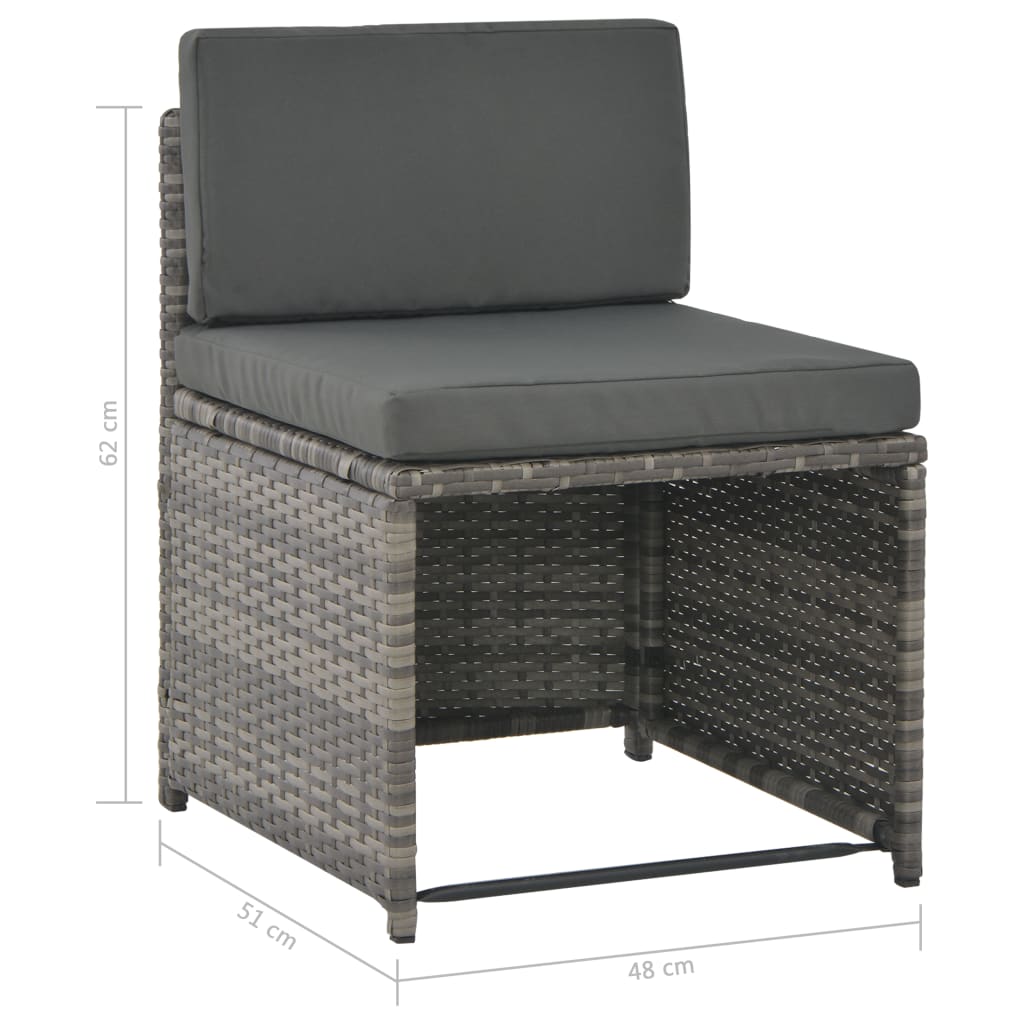 Diese Essgruppe aus Poly Rattan ist eine tolle Bereicherung für Ihren Außenbereich. Mit ihrem geradlinigen, stilvollen Design verleiht sie Ihrem Garten, Balkon oder Ihrer Terrasse einen Hauch moderner Eleganz. Hergestellt aus qualitativ hochwertigem, witterungsbeständigem PE-Rattan, ist dieses Set leicht zu reinigen, strapazierfähig und für den täglichen Gebrauch bestens geeignet. Der pulverbeschichtete Stahlrahmen macht das Set sehr robust und langlebig. Dank der Leichtbauweise lassen sich die Möbelstücke auch einfach verschieben. Des Weiteren sorgen die dick gepolsterten Stuhlkissen für zusätzlichen Komfort. Die Kissenbezüge können leicht abgenommen und gewaschen werden. Die Stühle und die Fußbänke können unterhalb des Tisches gelagert werden, um Platz zu sparen. Das Set ist einfach zu montieren. Im Lieferumfang sind 1 Tisch, 4 Stühle, 2 Fußbänke und 10 Kissen enthalten. Hinweis: Wir empfehlen, das Set bei Regen, Schnee oder Frost abzudecken, damit Sie sich über lange Zeit an ihm erfreuen können.