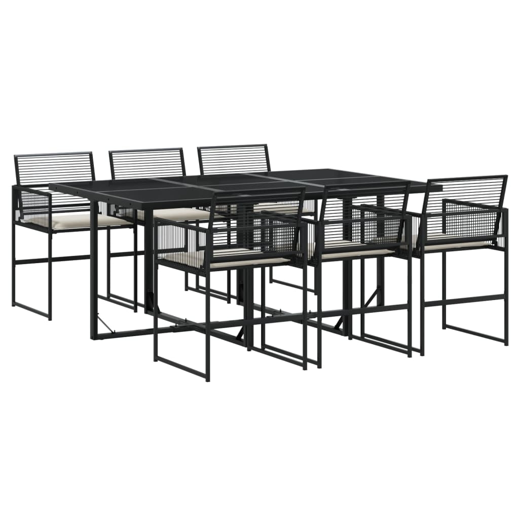 Diese Garten-Essgruppe ist eine ideale Wahl für Mahlzeiten im Freien oder einfach nur zum Entspannen im Garten, Hinterhof oder auf der Terrasse. Langlebiges Material: PE-Rattan, auch als Poly Rattan bekannt, ist ein robustes, pflegeleichtes synthetisches Material, das die Optik von natürlichem Rattan aufweist. Es kennzeichnet sich durch ein geringes Eigengewicht und lässt sich einfach reinigen. Aufgrund seiner Haltbarkeit und Witterungsbeständigkeit wird es häufig bei der Herstellung von Gartenmöbeln verwendet. Tischplatte aus Glas: Die Tischplatte des Gartentisches besteht aus starkem und langlebigem Hartglas, sodass sie leicht mit einem feuchten Tuch gereinigt werden kann und deinem Außenbereich einen Hauch von Eleganz verleiht. Platzsparende Aufbewahrung: Dank der klappbaren Rückenlehnen lassen sich die Stühle unter dem Tisch verstauen, sodass die gesamte Essgruppe bei Nichtgebrauch eine platzsparende Würfelform bildet. Bequemes Sitzerlebnis: Dieser Gartensessel mit dick gepolsterten Kissen bietet ein angenehmes Sitzgefühl. Gut zu wissen:Wir empfehlen dir, deine Gartenmöbel mit einer wasserdichten Hülle zu schützen, um lange Zeit eine ansprechende Optik aufzuweisen.