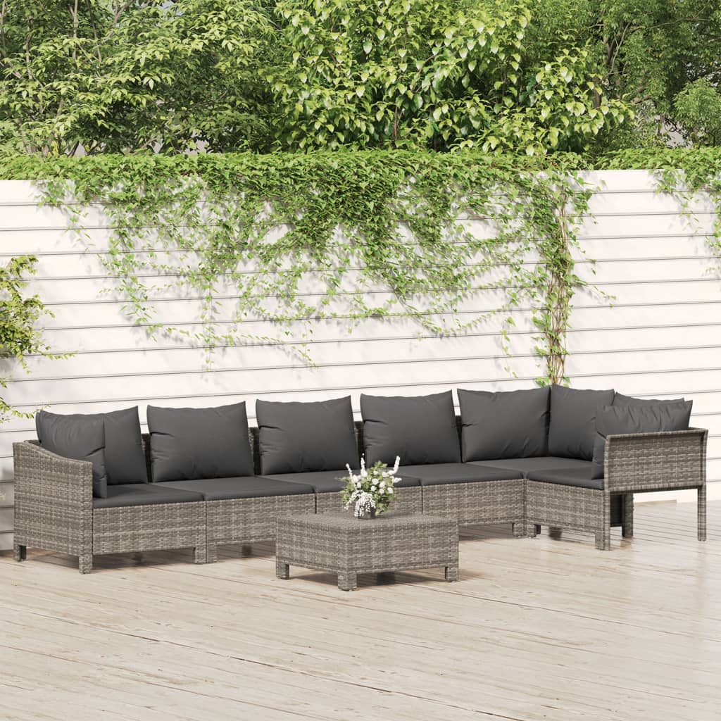 Mit seinem eleganten und modernen Design ist dieses trendige Garten-Lounge-Set eine großartige Wahl zum Entspannen in deinem Garten. Langlebiges Material: PE-Rattan, auch als Poly Rattan bekannt, ist witterungsbeständig und pflegeleicht. Seine Oberfläche weist lange Zeit eine ansprechende Optik auf. Es ist kostengünstiger als andere Materialien und bietet gleichzeitig hohe Qualität, Komfort und einen ästhetisches Look.Stabiler Rahmen: Stahl ist ein außergewöhnlich hartes und starkes Material. Er bietet Robustheit und Stabilität. Die Pulverbeschichtung bildet eine Schutzschicht gegen Abnutzung und Verschleiß.Modulares Design: Jedes Teil lässt sich leicht umstellen, um je nach Bedarf verschiedene Konfigurationen zu erstellen. In unserem Webshop sind auch andere modulare Elemente erhältlich, mit denen du dein eigenes Lounge-Set zusammenstellen kannst.Bequemes Sitzerlebnis: Dank der dick gepolsterten Sitz- und Rückenkissen ist das Outdoor-Lounge-Set sehr bequem. Gut zu wissen:Um die Montage so einfach wie möglich zu machen, wird jedes Produkt mit einer Anleitung geliefert. Hinweis:Damit deine Gartenmöbel lange schön bleiben, empfehlen wir dir, sie mit einer wasserdichten Hülle zu schützen.