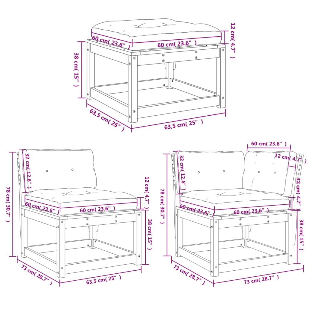 Dieses Garten-Lounge-Set aus Holz weist ein elegantes Design auf und ist eine ausgezeichnete Wahl zum Entspannen im Garten oder auf der Terrasse. Massives Kiefernholz: Massives Kiefernholz ist ein wunderschönes Naturmaterial. Kiefernholz weist eine gerade Maserung auf und die Aststellen verleihen dem Material seine charakteristische, rustikale Optik. Latten-Design: Das Latten-Design verhindert die Ansammlung von Wasser auf dem Lounge-Set, hält die Sitzfläche trocken und verhindert Verrottung. Bequemes Sitzerlebnis: Die Rückenlehne und die Armlehne verleihen dem Gartenmöbelset zusätzlichen Sitzkomfort. Zum hohen Sitzkomfort tragen auch die dick gepolsterten Kissen bei. Modulares Design: Dank des modularen Designs lassen sich die Gartenmöbel völlig flexibel und einfach umstellen, um deinen Außenbereich ganz individuell zu gestalten. Gut zu wissen:Wir empfehlen dir, deine Gartenmöbel mit einer wasserdichten Hülle zu schützen, um lange Zeit eine ansprechende Optik aufzuweisen.