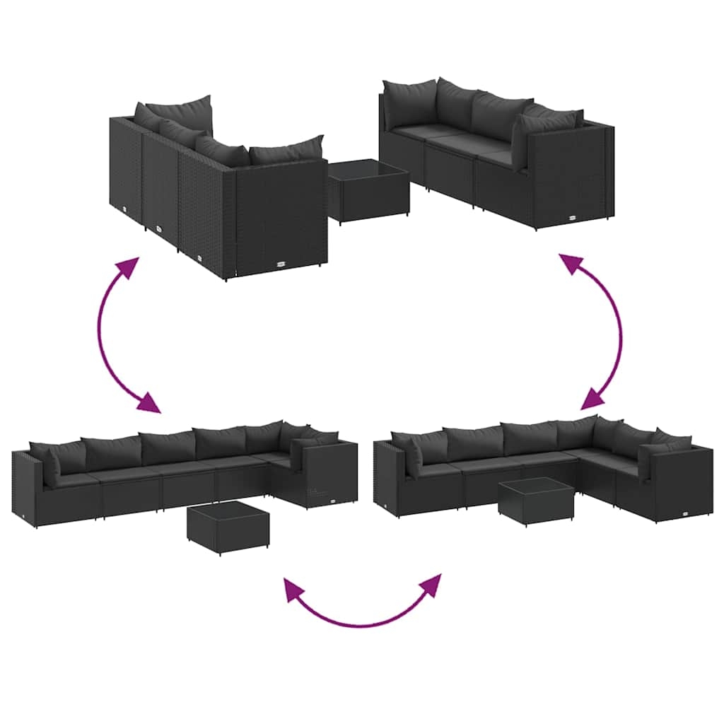 Dieses Garten-Lounge-Set ist die perfekte Ergänzung zu deinem Garten, deiner Terrasse oder deinem Innenhof. Es bietet einen bequemen und einladenden Platz, um mit Familie und Freunden zu plaudern oder dich einfach nur zu entspannen und das Leben im Freien zu genießen. Langlebiges Material: PE-Rattan, auch als Poly Rattan bekannt, ist ein robustes, pflegeleichtes synthetisches Material, das die Optik von natürlichem Rattan aufweist. Es kennzeichnet sich durch ein geringes Eigengewicht und lässt sich einfach reinigen. Aufgrund seiner Haltbarkeit und Witterungsbeständigkeit wird es häufig bei der Herstellung von Gartenmöbeln verwendet.Robustes und stabiles Gestell: Der pulverbeschichtete Stahlgestell ist stark, stabil, langlebig sowie korrosions- und wetterbeständig, um eine lang anhaltende Leistung zu gewährleisten.Tischplatte aus Glas: Die Tischplatte des Gartentisches besteht aus starkem und langlebigem Hartglas, sodass sie leicht mit einem feuchten Tuch gereinigt werden kann und deinem Außenbereich einen Hauch von Eleganz verleiht.Modulares Design: Dank des modularen Designs lassen sich die Gartenmöbel völlig flexibel und einfach umstellen, um deinen Außenbereich ganz individuell zu gestalten.Bequemes Sitzerlebnis: Dieser Gartensessel mit dick gepolsterten Kissen bietet ein angenehmes Sitzgefühl. Gut zu wissen:Wir empfehlen dir, deine Gartenmöbel mit einer wasserdichten Hülle zu schützen, um lange Zeit eine ansprechende Optik aufzuweisen.
