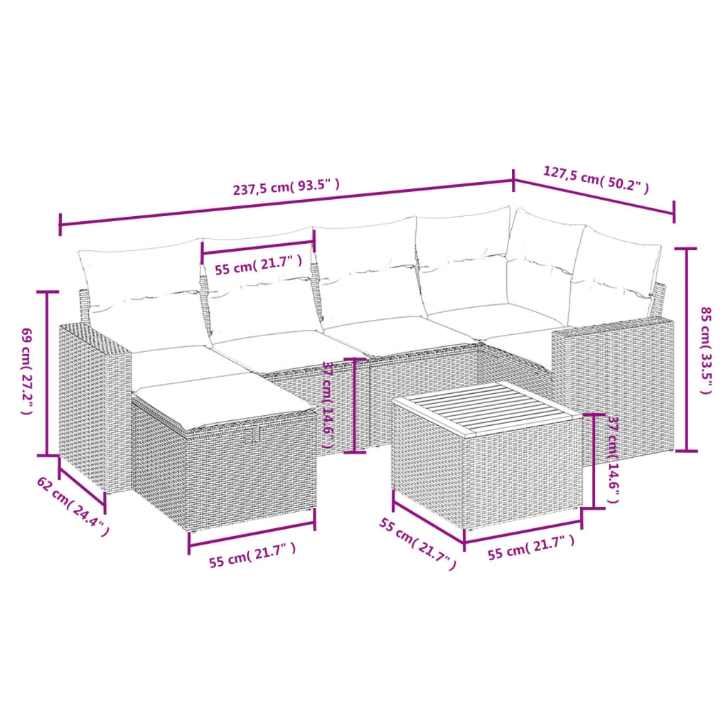 Diese Garten-Sofagarnitur ist die perfekte Ergänzung zu deinem Garten, deiner Terrasse oder deinem Innenhof. Sie bietet einen bequemen und einladenden Platz, um mit Familie und Freunden zu plaudern oder dich einfach nur zu entspannen und das Leben im Freien zu genießen. Langlebiges Material: PE-Rattan, auch als Poly Rattan bekannt, ist ein robustes, pflegeleichtes synthetisches Material, das die Optik von natürlichem Rattan aufweist. Es kennzeichnet sich durch ein geringes Eigengewicht und lässt sich einfach reinigen. Aufgrund seiner Haltbarkeit und Witterungsbeständigkeit wird es häufig bei der Herstellung von Gartenmöbeln verwendet.Stabile und pflegeleichte Tischplatte: Dieser Gartentisch besitzt eine Tischplatte aus Akazienholz, die robust und langlebig ist und sich leicht mit einem feuchten Tuch reinigen lässt.Abnehmbarer und waschbarer Bezug: Diese Sitzkissen verfügen über abnehmbare Bezüge für einfaches Waschen und Pflegen.Robuster und stabiler Rahmen: Dank des pulverbeschichteten Stahlrahmens ist das Möbelstück robust, stabil und für den täglichen Einsatz im Außenbereich geeignet.Modulares Design: Dank des modularen Designs lassen sich die Gartenmöbel völlig flexibel und einfach umstellen, um deinen Außenbereich ganz individuell zu gestalten. Gut zu wissen:Wir empfehlen dir, deine Gartenmöbel mit einer wasserdichten Hülle zu schützen, um lange Zeit eine ansprechende Optik aufzuweisen.