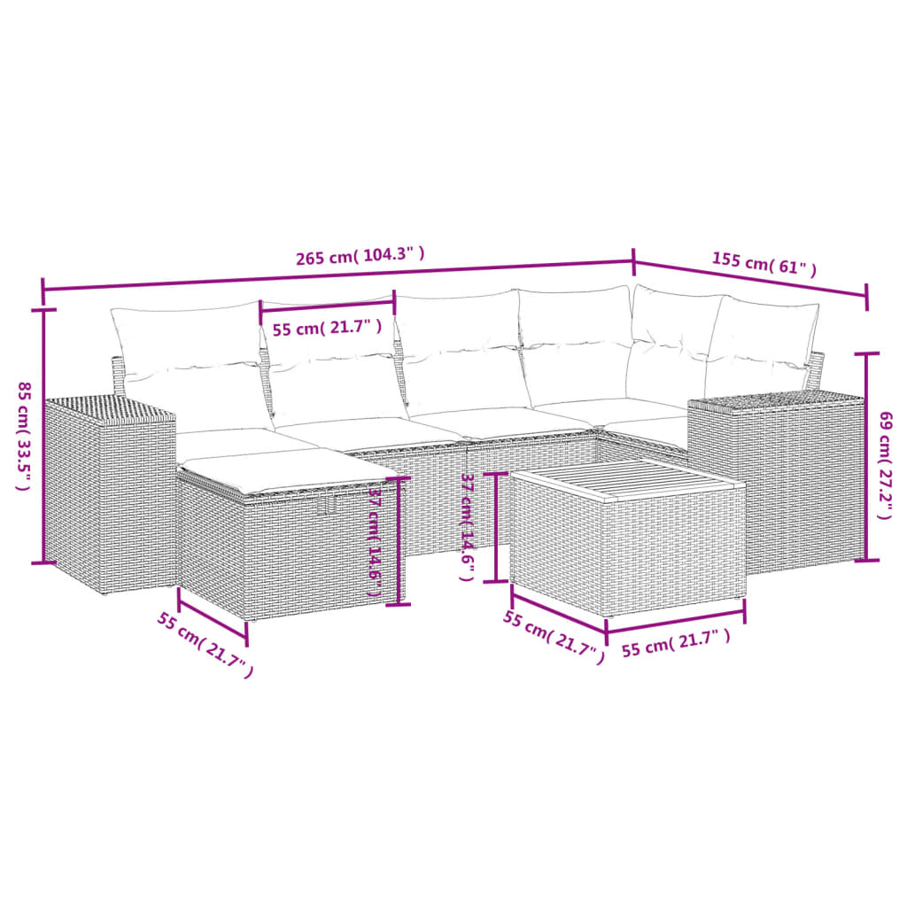 Diese Garten-Sofagarnitur ist die perfekte Ergänzung zu deinem Garten, deiner Terrasse oder deinem Innenhof. Sie bietet einen bequemen und einladenden Platz, um mit Familie und Freunden zu plaudern oder dich einfach nur zu entspannen und das Leben im Freien zu genießen. Langlebiges Material: PE-Rattan, auch als Poly Rattan bekannt, ist ein robustes, pflegeleichtes synthetisches Material, das die Optik von natürlichem Rattan aufweist. Es kennzeichnet sich durch ein geringes Eigengewicht und lässt sich einfach reinigen. Aufgrund seiner Haltbarkeit und Witterungsbeständigkeit wird es häufig bei der Herstellung von Gartenmöbeln verwendet.Stabile und pflegeleichte Tischplatte: Dieser Gartentisch besitzt eine Tischplatte aus Akazienholz, die robust und langlebig ist und sich leicht mit einem feuchten Tuch reinigen lässt.Abnehmbarer und waschbarer Bezug: Diese Sitzkissen verfügen über abnehmbare Bezüge für einfaches Waschen und Pflegen.Robuster und stabiler Rahmen: Dank des pulverbeschichteten Stahlrahmens ist das Möbelstück robust, stabil und für den täglichen Einsatz im Außenbereich geeignet.Modulares Design: Dank des modularen Designs lassen sich die Gartenmöbel völlig flexibel und einfach umstellen, um deinen Außenbereich ganz individuell zu gestalten. Gut zu wissen:Wir empfehlen dir, deine Gartenmöbel mit einer wasserdichten Hülle zu schützen, um lange Zeit eine ansprechende Optik aufzuweisen.