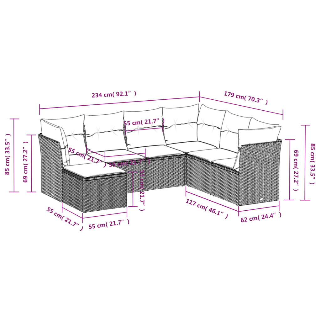 - 7 x Sitzkissen mit abnehmbarem und waschbarem Bezug