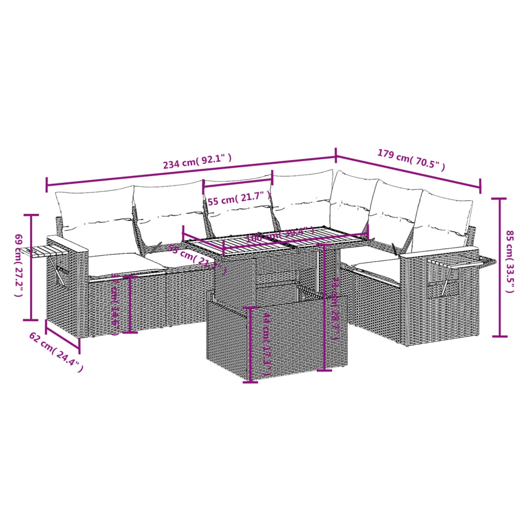 Diese Garten-Sofagarnitur ist die perfekte Ergänzung zu deinem Garten, deiner Terrasse oder deinem Innenhof. Sie bietet einen bequemen und einladenden Platz, um mit Familie und Freunden zu plaudern oder dich einfach nur zu entspannen und das Leben im Freien zu genießen. Langlebiges Material: PE-Rattan, auch als Poly Rattan bekannt, ist ein robustes, pflegeleichtes synthetisches Material, das die Optik von natürlichem Rattan aufweist. Es kennzeichnet sich durch ein geringes Eigengewicht und lässt sich einfach reinigen. Aufgrund seiner Haltbarkeit und Witterungsbeständigkeit wird es häufig bei der Herstellung von Gartenmöbeln verwendet.Verstellbare Tischplatte: Die Tischplatte lässt sich anheben, um den Gartentisch höher zu machen und ihn von einem Couchtisch in einen Esstisch zu verwandeln. Der Tisch eignet sich daher perfekt für Gäste oder Mahlzeiten im Freien.Praktischer Beistelltisch: Dieses Gartensofa verfügt über klappbare Ablagen mit Gasfedern an den Armlehnen, auf denen du verschieden Sachen griffbereit aufbewahren kannst.Abnehmbarer und waschbarer Bezug: Diese Sitzkissen verfügen über abnehmbare Bezüge für einfaches Waschen und Pflegen.Modulares Design: Dank des modularen Designs lassen sich die Gartenmöbel völlig flexibel und einfach umstellen, um deinen Außenbereich ganz individuell zu gestalten. Gut zu wissen:Wir empfehlen dir, deine Gartenmöbel mit einer wasserdichten Hülle zu schützen, um lange Zeit eine ansprechende Optik aufzuweisen.