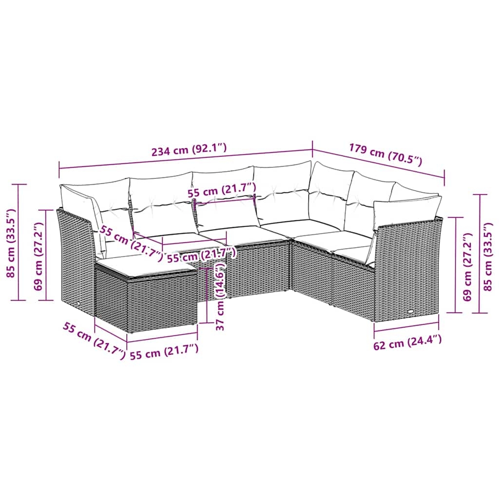Diese Garten-Sofagarnitur ist die perfekte Ergänzung zu deinem Garten, deiner Terrasse oder deinem Innenhof. Sie bietet einen bequemen und einladenden Platz, um mit Familie und Freunden zu plaudern oder dich einfach nur zu entspannen und das Leben im Freien zu genießen. Langlebiges Material: PE-Rattan, auch als Poly Rattan bekannt, ist ein robustes, pflegeleichtes synthetisches Material, das die Optik von natürlichem Rattan aufweist. Es kennzeichnet sich durch ein geringes Eigengewicht und lässt sich einfach reinigen. Aufgrund seiner Haltbarkeit und Witterungsbeständigkeit wird es häufig bei der Herstellung von Gartenmöbeln verwendet.Stauraum mit wasserfestem Beutel: Jedes Gartensofa verfügt über ein Staufach unter der Sitzfläche, das mit einem wasserfesten Beutel zur Aufbewahrung von Kissen, Spielzeug und anderen Gegenständen versehen ist. Die Kissen sind mit Bezügen versehen und lassen sich mit Klettverschlüssen fest und sicher an den Sofas befestigen.Abnehmbarer und waschbarer Bezug: Diese Sitzkissen verfügen über abnehmbare Bezüge für einfaches Waschen und Pflegen.Modulares Design: Dank des modularen Designs lassen sich die Gartenmöbel völlig flexibel und einfach umstellen, um deinen Außenbereich ganz individuell zu gestalten. Gut zu wissen:Wir empfehlen dir, deine Gartenmöbel mit einer wasserdichten Hülle zu schützen, um lange Zeit eine ansprechende Optik aufzuweisen.