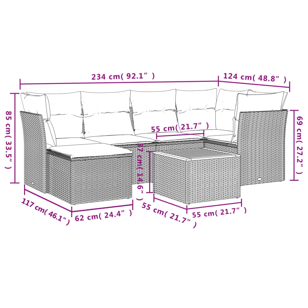 Diese Garten-Sofagarnitur ist die perfekte Ergänzung zu deinem Garten, deiner Terrasse oder deinem Innenhof. Sie bietet einen bequemen und einladenden Platz, um mit Familie und Freunden zu plaudern oder dich einfach nur zu entspannen und das Leben im Freien zu genießen. Langlebiges Material: PE-Rattan, auch als Poly Rattan bekannt, ist ein robustes, pflegeleichtes synthetisches Material, das die Optik von natürlichem Rattan aufweist. Es kennzeichnet sich durch ein geringes Eigengewicht und lässt sich einfach reinigen. Aufgrund seiner Haltbarkeit und Witterungsbeständigkeit wird es häufig bei der Herstellung von Gartenmöbeln verwendet.Bequemes Sitzerlebnis: Dieser Gartensessel mit dick gepolsterten Kissen bietet ein angenehmes Sitzgefühl.Stabile und pflegeleichte Tischplatte: Dieser Gartentisch besitzt eine Tischplatte aus Akazienholz, die robust und langlebig ist und sich leicht mit einem feuchten Tuch reinigen lässt.Abnehmbarer und waschbarer Bezug: Diese Sitzkissen verfügen über abnehmbare Bezüge für einfaches Waschen und Pflegen.Modulares Design: Dank des modularen Designs lassen sich die Gartenmöbel völlig flexibel und einfach umstellen, um deinen Außenbereich ganz individuell zu gestalten. Gut zu wissen:Wir empfehlen dir, deine Gartenmöbel mit einer wasserdichten Hülle zu schützen, um lange Zeit eine ansprechende Optik aufzuweisen.