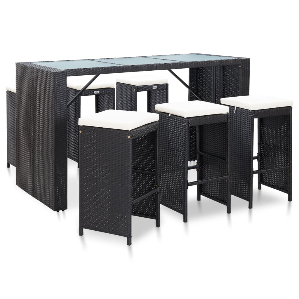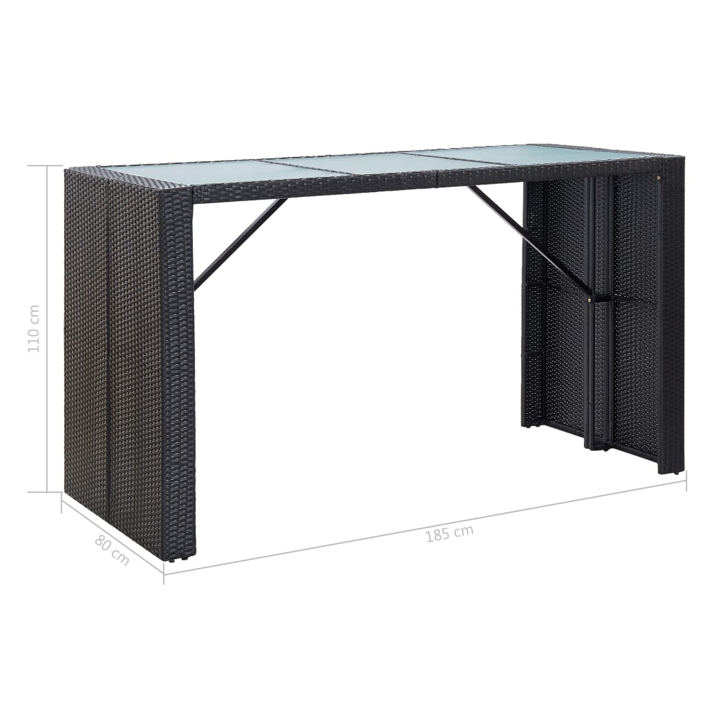 Dieses Gartenbar-Set aus Poly Rattan im eleganten Design wird sicherlich zum Blickfang in Ihrem Garten, auf dem Balkon oder auf Ihrer Terrasse. Aus witterungsbeständigem PE-Rattan gefertigt und mit einer 3-teiligen, mattierten Hartglas-Tischplatte versehen, ist das Gartenbar-Set leicht zu reinigen, strapazierfähig und für den täglichen Gebrauch bestens geeignet. Die Stahlrahmen verleihen dem Tisch und dan Barhockern hohe Stabililtät und Langlebigkeit. Durch die Leichtbauweise können alle Teile einfach umstellt werden. Die dicken, abnehmbaren Sitzpolster bieten ultimativen Sitzkomfort. Die mit Reißverschlüssen versehenen Kissenbezüge können leicht abgenommen und gewaschen werden. Hinweis: Wir empfehlen, das Set bei Regen, Schnee und Frost abzudecken.