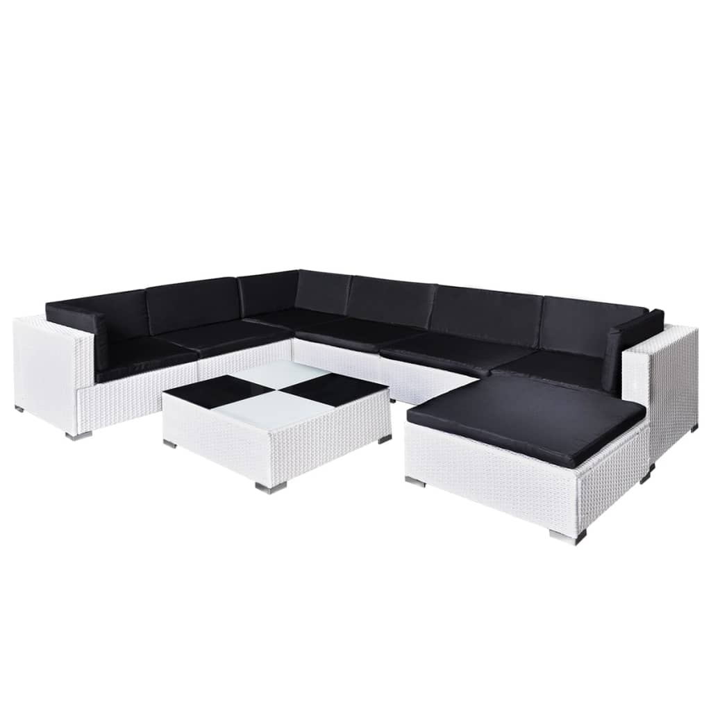 Diese Rattansitzgarnitur ist die perfekte Kombination aus Stil und Funktionalität. Somit können Sie in Ihrem Garten zusammen mit Ihrer Familie und Ihren Freunden einen entspannten, sonnigen Nachmittag verbringen. Dank des stabilen Gestells aus pulverbeschichtetem Stahl ist das Rattan-Lounge-Set stark, robust und langlebig. Die 6 cm dicken, abnehmbaren Sitz- und Rückenkissen bieten optimalen Sitzkomfort. Dieses Rattan-Lounge-Set aus wetterbeständigem und wasserfestem PE-Rattan ist für den Einsatz im Freien konzipiert. Ein Kaffeetisch mit Glasplatte ist ebenfalls im Lieferumfang enthalten. Unsere Gartenmöbel aus Poly-Rattan werden ganz sicher zum Hingucker in Ihrem Garten oder auf Ihrer Terrasse. Lieferung enthält 3 x Eckelemente, 3 x Mittelelemente, 1 x Hocker, 1 x Couchtisch mit Glasplatte, 7 x Sitzpolster, 9 x Rückenpolster. Hinweis: Wir empfehlen, das Set bei Regen, Schnee und Frost abzudecken.