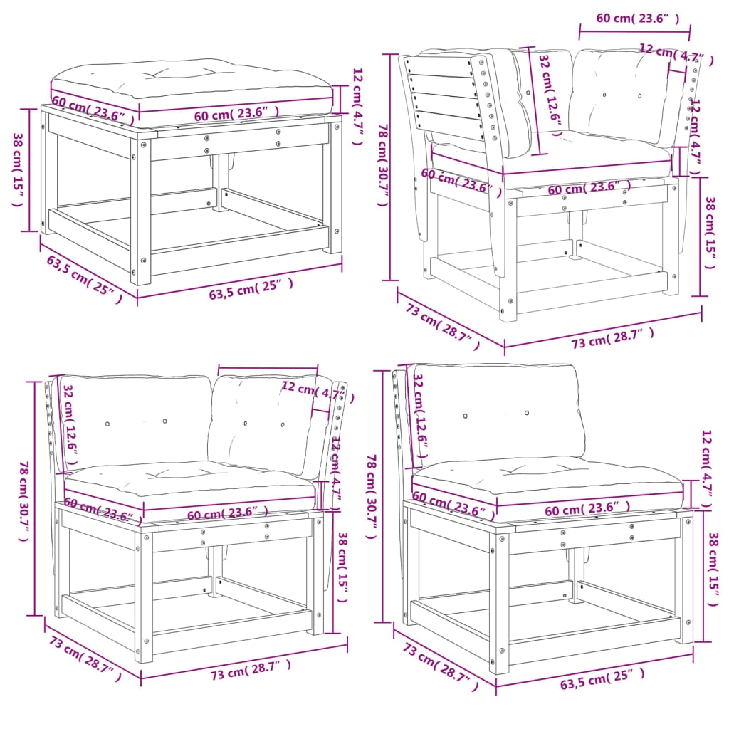 Dieses Garten-Lounge-Set aus Holz weist ein elegantes Design auf und ist eine ausgezeichnete Wahl zum Entspannen im Garten oder auf der Terrasse. Massives Kiefernholz: Massives Kiefernholz ist ein wunderschönes Naturmaterial. Kiefernholz weist eine gerade Maserung auf und die Aststellen verleihen dem Material seine charakteristische, rustikale Optik. Latten-Design: Das Latten-Design verhindert die Ansammlung von Wasser auf dem Lounge-Set, hält die Sitzfläche trocken und verhindert Verrottung. Bequemes Sitzerlebnis: Die Rückenlehne und die Armlehne verleihen dem Gartenmöbelset zusätzlichen Sitzkomfort. Zum hohen Sitzkomfort tragen auch die dick gepolsterten Kissen bei. Modulares Design: Dank des modularen Designs lassen sich die Gartenmöbel völlig flexibel und einfach umstellen, um deinen Außenbereich ganz individuell zu gestalten. Gut zu wissen:Wir empfehlen dir, deine Gartenmöbel mit einer wasserdichten Hülle zu schützen, um lange Zeit eine ansprechende Optik aufzuweisen.