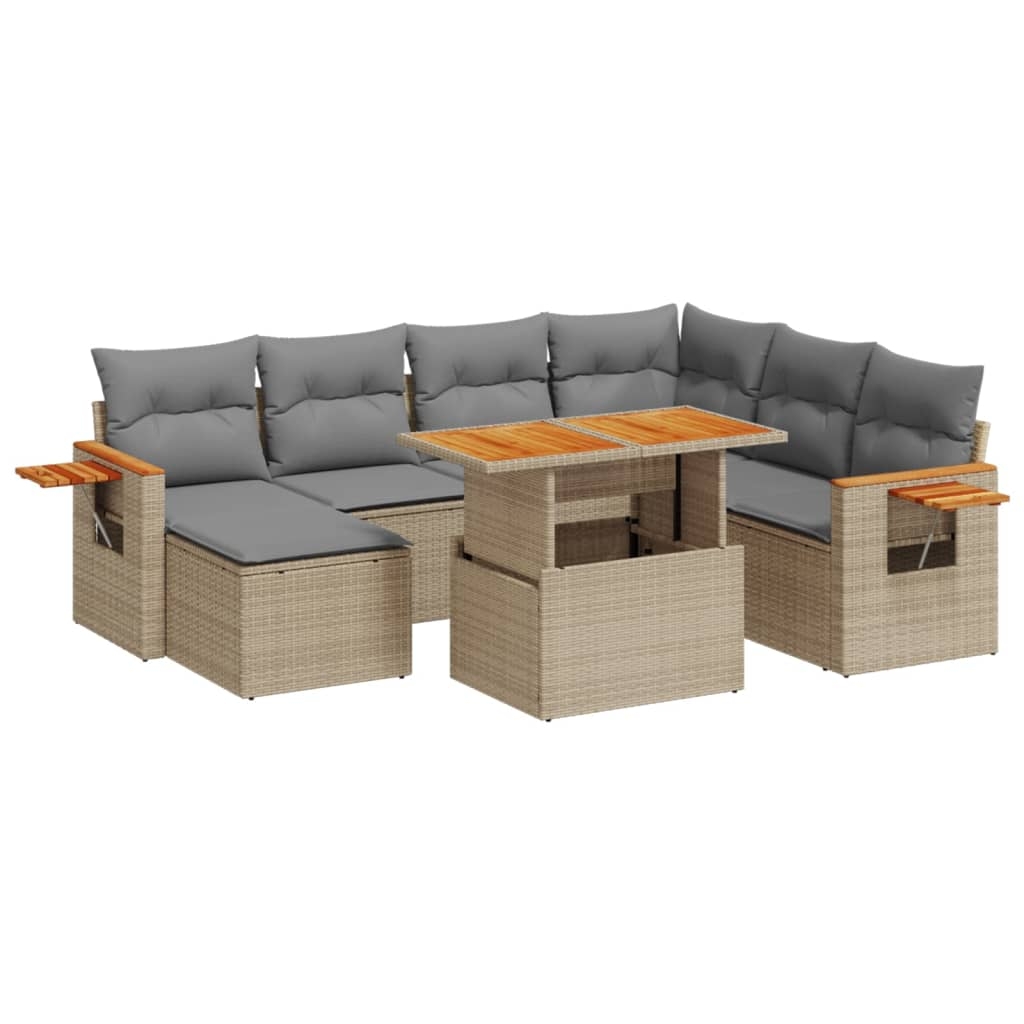Diese Garten-Sofagarnitur ist die perfekte Ergänzung zu deinem Garten, deiner Terrasse oder deinem Innenhof. Sie bietet einen bequemen und einladenden Platz, um mit Familie und Freunden zu plaudern oder dich einfach nur zu entspannen und das Leben im Freien zu genießen. Langlebiges Material: PE-Rattan, auch als Poly Rattan bekannt, ist ein robustes, pflegeleichtes synthetisches Material, das die Optik von natürlichem Rattan aufweist. Es kennzeichnet sich durch ein geringes Eigengewicht und lässt sich einfach reinigen. Aufgrund seiner Haltbarkeit und Witterungsbeständigkeit wird es häufig bei der Herstellung von Gartenmöbeln verwendet.Verstellbare Tischplatte: Die Tischplatte lässt sich anheben, um den Gartentisch höher zu machen und ihn von einem Couchtisch in einen Esstisch zu verwandeln. Der Tisch eignet sich daher perfekt für Gäste oder Mahlzeiten im Freien.Praktischer Beistelltisch: Dieses Gartensofa verfügt über klappbare Ablagen mit Gasfedern an den Armlehnen, auf denen du verschieden Sachen griffbereit aufbewahren kannst.Abnehmbarer und waschbarer Bezug: Diese Sitzkissen verfügen über abnehmbare Bezüge für einfaches Waschen und Pflegen.Modulares Design: Dank des modularen Designs lassen sich die Gartenmöbel völlig flexibel und einfach umstellen, um deinen Außenbereich ganz individuell zu gestalten. Gut zu wissen:Wir empfehlen dir, deine Gartenmöbel mit einer wasserdichten Hülle zu schützen, um lange Zeit eine ansprechende Optik aufzuweisen.