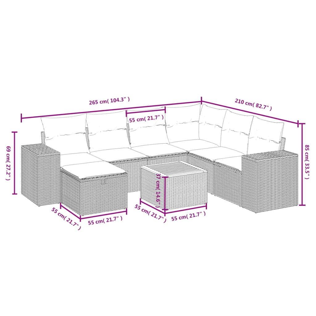 Diese Garten-Sofagarnitur ist die perfekte Ergänzung zu deinem Garten, deiner Terrasse oder deinem Innenhof. Sie bietet einen bequemen und einladenden Platz, um mit Familie und Freunden zu plaudern oder dich einfach nur zu entspannen und das Leben im Freien zu genießen. Langlebiges Material: PE-Rattan, auch als Poly Rattan bekannt, ist ein robustes, pflegeleichtes synthetisches Material, das die Optik von natürlichem Rattan aufweist. Es kennzeichnet sich durch ein geringes Eigengewicht und lässt sich einfach reinigen. Aufgrund seiner Haltbarkeit und Witterungsbeständigkeit wird es häufig bei der Herstellung von Gartenmöbeln verwendet.Stabile und pflegeleichte Tischplatte: Dieser Gartentisch besitzt eine Tischplatte aus Akazienholz, die robust und langlebig ist und sich leicht mit einem feuchten Tuch reinigen lässt.Abnehmbarer und waschbarer Bezug: Diese Sitzkissen verfügen über abnehmbare Bezüge für einfaches Waschen und Pflegen.Robuster und stabiler Rahmen: Dank des pulverbeschichteten Stahlrahmens ist das Möbelstück robust, stabil und für den täglichen Einsatz im Außenbereich geeignet.Modulares Design: Dank des modularen Designs lassen sich die Gartenmöbel völlig flexibel und einfach umstellen, um deinen Außenbereich ganz individuell zu gestalten. Gut zu wissen:Wir empfehlen dir, deine Gartenmöbel mit einer wasserdichten Hülle zu schützen, um lange Zeit eine ansprechende Optik aufzuweisen.