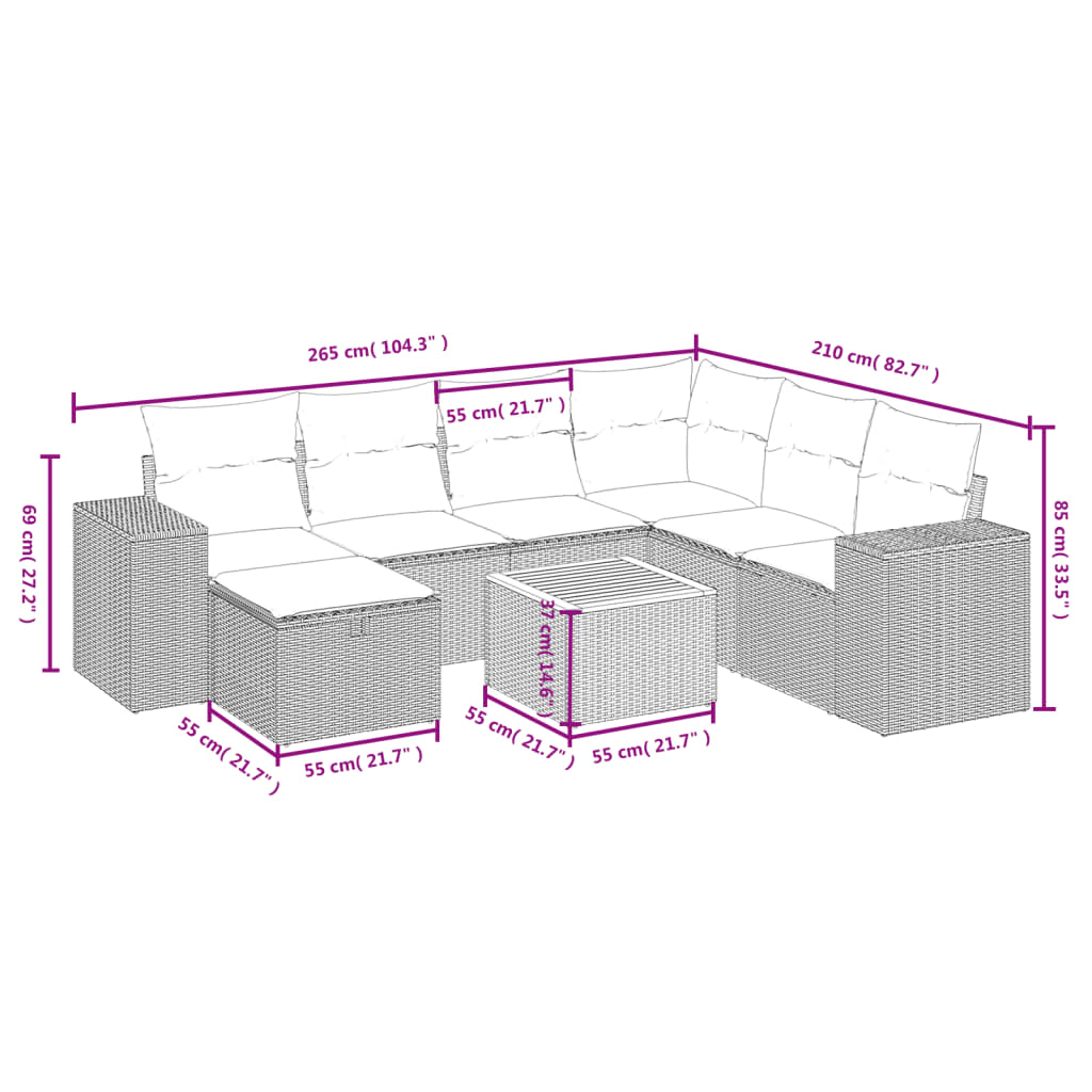 Diese Garten-Sofagarnitur ist die perfekte Ergänzung zu deinem Garten, deiner Terrasse oder deinem Innenhof. Sie bietet einen bequemen und einladenden Platz, um mit Familie und Freunden zu plaudern oder dich einfach nur zu entspannen und das Leben im Freien zu genießen. Langlebiges Material: PE-Rattan, auch als Poly Rattan bekannt, ist ein robustes, pflegeleichtes synthetisches Material, das die Optik von natürlichem Rattan aufweist. Es kennzeichnet sich durch ein geringes Eigengewicht und lässt sich einfach reinigen. Aufgrund seiner Haltbarkeit und Witterungsbeständigkeit wird es häufig bei der Herstellung von Gartenmöbeln verwendet.Stabile und pflegeleichte Tischplatte: Dieser Gartentisch besitzt eine Tischplatte aus Akazienholz, die robust und langlebig ist und sich leicht mit einem feuchten Tuch reinigen lässt.Abnehmbarer und waschbarer Bezug: Diese Sitzkissen verfügen über abnehmbare Bezüge für einfaches Waschen und Pflegen.Robuster und stabiler Rahmen: Dank des pulverbeschichteten Stahlrahmens ist das Möbelstück robust, stabil und für den täglichen Einsatz im Außenbereich geeignet.Modulares Design: Dank des modularen Designs lassen sich die Gartenmöbel völlig flexibel und einfach umstellen, um deinen Außenbereich ganz individuell zu gestalten. Gut zu wissen:Wir empfehlen dir, deine Gartenmöbel mit einer wasserdichten Hülle zu schützen, um lange Zeit eine ansprechende Optik aufzuweisen.