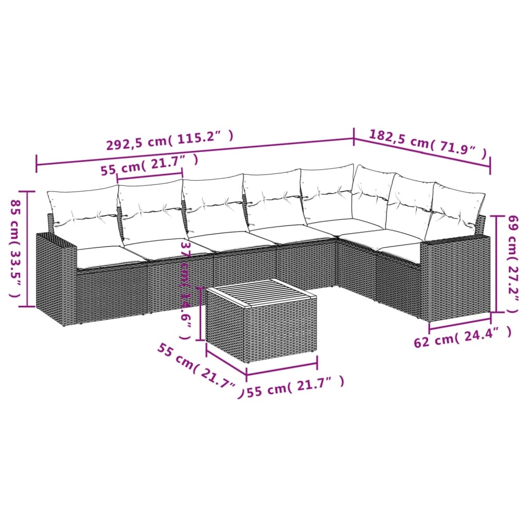 Diese Garten-Sofagarnitur ist die perfekte Ergänzung zu deinem Garten, deiner Terrasse oder deinem Innenhof. Sie bietet einen bequemen und einladenden Platz, um mit Familie und Freunden zu plaudern oder dich einfach nur zu entspannen und das Leben im Freien zu genießen. Langlebiges Material: PE-Rattan, auch als Poly Rattan bekannt, ist ein robustes, pflegeleichtes synthetisches Material, das die Optik von natürlichem Rattan aufweist. Es kennzeichnet sich durch ein geringes Eigengewicht und lässt sich einfach reinigen. Aufgrund seiner Haltbarkeit und Witterungsbeständigkeit wird es häufig bei der Herstellung von Gartenmöbeln verwendet.Bequemes Sitzerlebnis: Dieser Gartensessel mit dick gepolsterten Kissen bietet ein angenehmes Sitzgefühl.Stabile und pflegeleichte Tischplatte: Dieser Gartentisch besitzt eine Tischplatte aus Akazienholz, die robust und langlebig ist und sich leicht mit einem feuchten Tuch reinigen lässt.Abnehmbarer und waschbarer Bezug: Diese Sitzkissen verfügen über abnehmbare Bezüge für einfaches Waschen und Pflegen.Modulares Design: Dank des modularen Designs lassen sich die Gartenmöbel völlig flexibel und einfach umstellen, um deinen Außenbereich ganz individuell zu gestalten. Gut zu wissen:Wir empfehlen dir, deine Gartenmöbel mit einer wasserdichten Hülle zu schützen, um lange Zeit eine ansprechende Optik aufzuweisen.