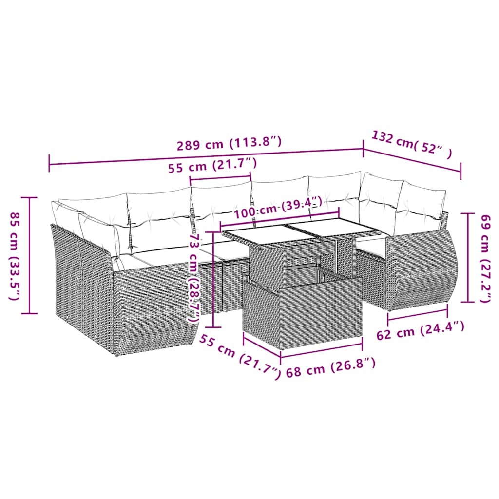 Diese Garten-Sofagarnitur ist die perfekte Ergänzung zu deinem Garten, deiner Terrasse oder deinem Innenhof. Sie bietet einen bequemen und einladenden Platz, um mit Familie und Freunden zu plaudern oder dich einfach nur zu entspannen und das Leben im Freien zu genießen. Langlebiges Material: PE-Rattan, auch als Poly Rattan bekannt, ist ein robustes, pflegeleichtes synthetisches Material, das die Optik von natürlichem Rattan aufweist. Es kennzeichnet sich durch ein geringes Eigengewicht und lässt sich einfach reinigen. Aufgrund seiner Haltbarkeit und Witterungsbeständigkeit wird es häufig bei der Herstellung von Gartenmöbeln verwendet.Verstellbare Tischplatte: Die Tischplatte lässt sich anheben, um den Gartentisch höher zu machen und ihn von einem Couchtisch in einen Esstisch zu verwandeln. Er eignet sich daher perfekt für Gäste oder Mahlzeiten im Freien.Bequemes Sitzerlebnis: Dieser Gartensessel mit dick gepolsterten Kissen bietet ein angenehmes Sitzgefühl.Abnehmbarer und waschbarer Bezug: Diese Sitzkissen verfügen über abnehmbare Bezüge für einfaches Waschen und Pflegen.Modulares Design: Dank des modularen Designs lassen sich die Gartenmöbel völlig flexibel und einfach umstellen, um deinen Außenbereich ganz individuell zu gestalten. Gut zu wissen:Wir empfehlen dir, deine Gartenmöbel mit einer wasserdichten Hülle zu schützen, um lange Zeit eine ansprechende Optik aufzuweisen.