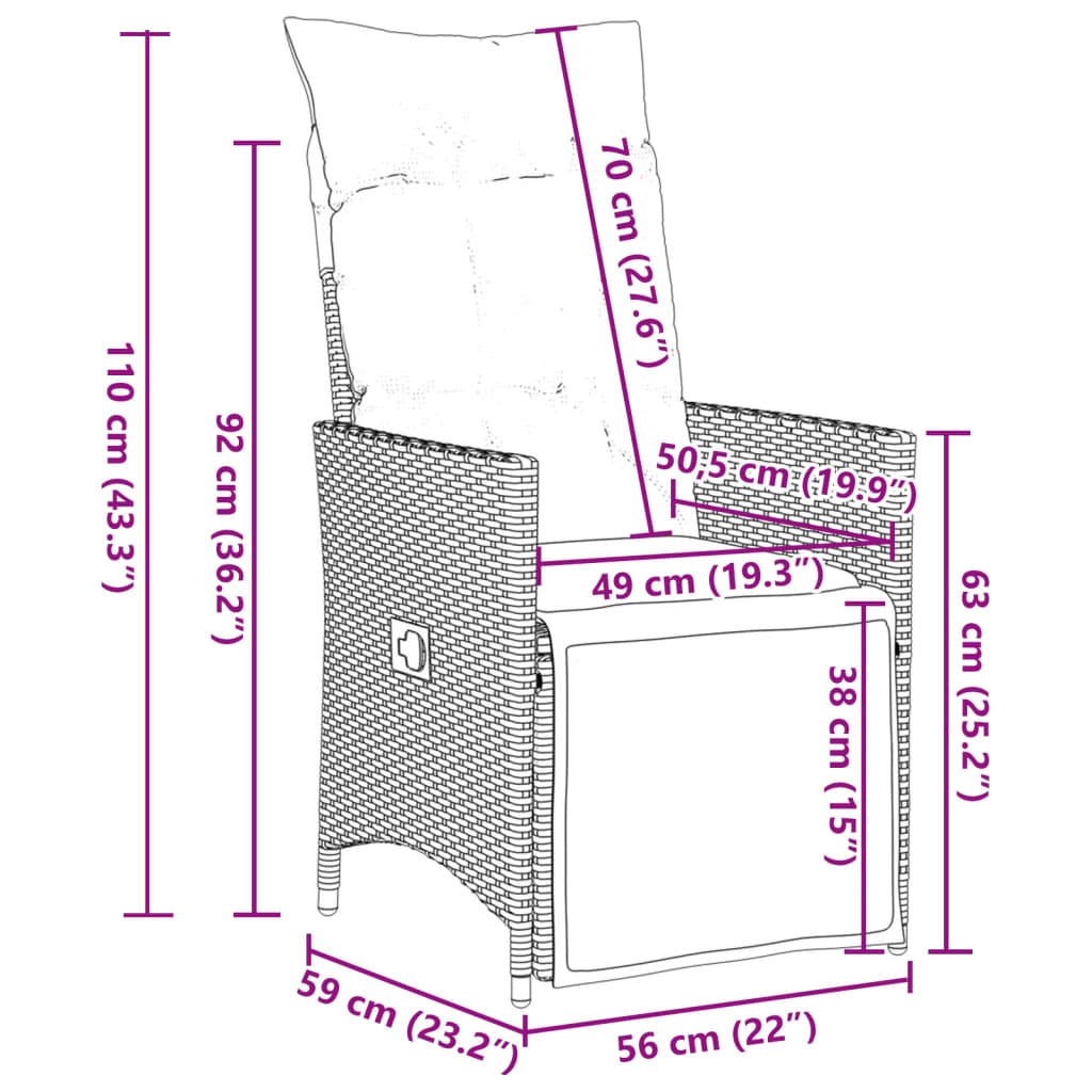 Genieße einen Kaffee oder unterhalte dich mit deiner Familie und deinen Freunden im Garten, Hinterhof oder auf dem Balkon mit diesem bequemen Bistro-Set! Langlebiges Material: PE-Rattan, auch als Poly Rattan bekannt, ist ein robustes, pflegeleichtes synthetisches Material, das die Optik von natürlichem Rattan aufweist. Es kennzeichnet sich durch ein geringes Eigengewicht und lässt sich einfach reinigen. Aufgrund seiner Haltbarkeit und Witterungsbeständigkeit wird es häufig bei der Herstellung von Gartenmöbeln verwendet.Verstellbare Rückenlehne und verstellbares Fußteil: Der Gartensessel ist mit einem Griff versehen. So kannst du die Rückenlehne und das Fußteil durch Ziehen des Griffs verstellen und sie danach schnell wieder in ihre ursprüngliche Position bringen.Bequemes Sitzerlebnis: Dieser Gartensessel mit dick gepolsterten Kissen bietet ein angenehmes Sitzgefühl.Abnehmbarer und waschbarer Bezug: Die Sitzkissen verfügen über abnehmbare Bezüge, die sich ganz einfach waschen und reinigen lassen. Dank der Klappen an der Rückseite können die Rückenkissen ganz einfach an den Rückenlehnen befestigt werden.Tischplatte aus Glas: Die Tischplatte des Gartentisches besteht aus starkem und langlebigem Hartglas, sodass sie leicht mit einem feuchten Tuch gereinigt werden kann und deinem Außenbereich einen Hauch von Eleganz verleiht. Gut zu wissen:Wir empfehlen dir, deine Gartenmöbel mit einer wasserdichten Hülle zu schützen, um lange Zeit eine ansprechende Optik aufzuweisen.