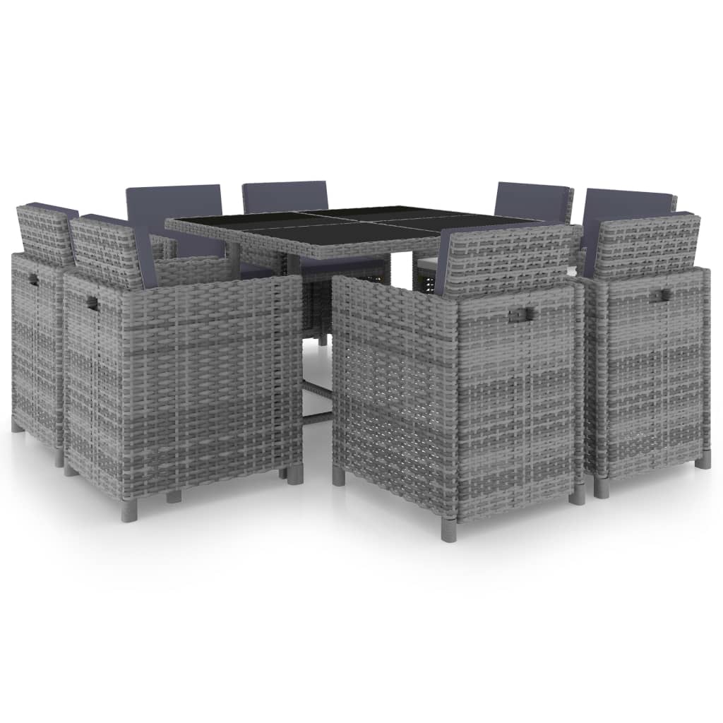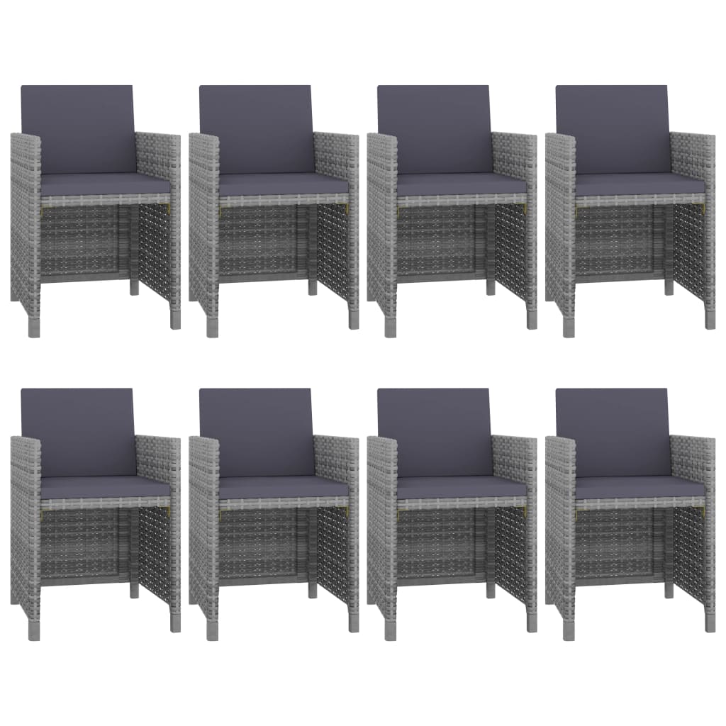 Diese stilvolle Garten-Essgruppe aus Rattan wird zum Mittelpunkt Ihres Gartens oder Ihrer Terrasse! Diese elegante Sitzgruppe ist die beste Wahl für unvergessliche Mahlzeiten im Freien und für entspannte Wochenenden oder Abendstunden im Garten. Die pulverbeschichteten Stahlrahmen verleihen dieser Sitzgruppe Robustheit und Langlebigkeit. Dank der Leichtbaukonstruktion können alle Möbelteile leicht bewegt und umgestellt werden. Dank des witterungsbeständigen und wasserdichten PE-Rattans ist die Essgruppe leicht zu reinigen. Die Glastischplatte kann einfach mit einem feuchten Tuch sauber gehalten werden. Die dicken, weichen, schaumstoffgefüllten Sitz- und Rückenpolster sind sehr komfortabel und aus wasserabweisendem Polyester gefertigt. Die abnehmbaren Bezüge sind mit Reißverschlüssen versehen, so dass man auch diese waschen kann. Außerdem können die Rückenlehnen nach unten geklappt werden, so dass vier Stühle platzsparend unter dem Tisch aufbewahrt werden können, wenn sie gerade nicht benutzt werden. Die Lieferung beinhaltet 1 Tisch, 8 Stühle und 16 Polster. Hinweis: Wir empfehlen, das Set bei Regen, Schnee und Frost abzudecken.