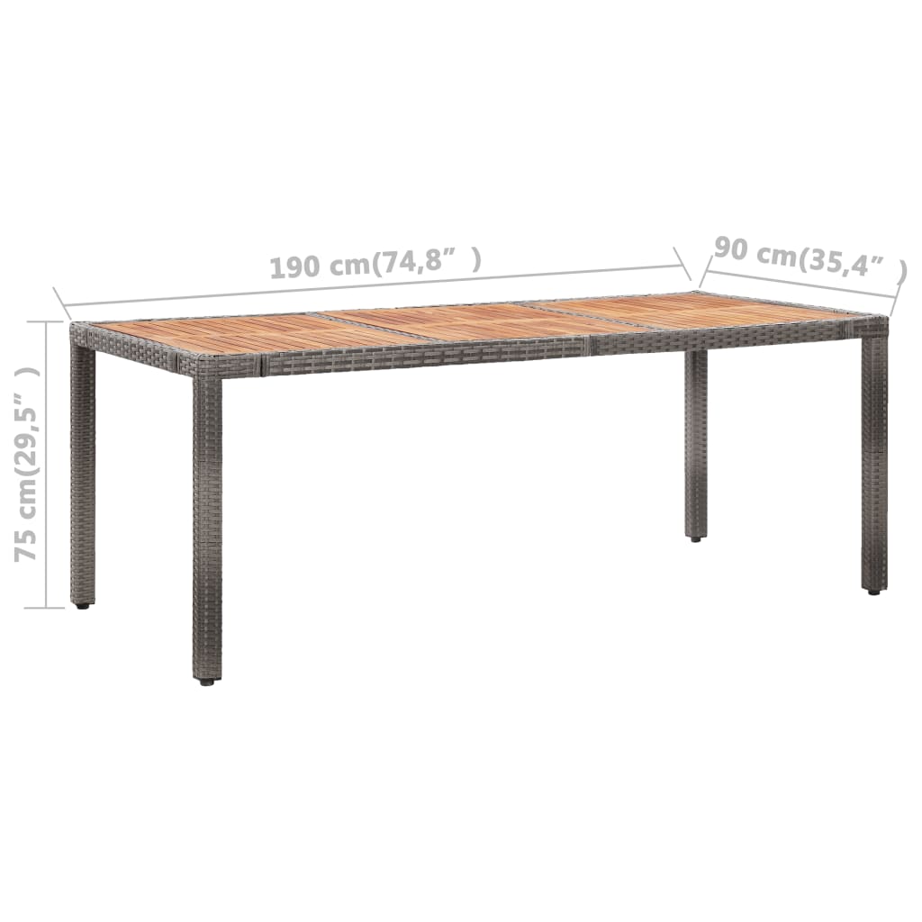 - Material: PE-Rattan + Tischplatte und Armlehnen aus Akazienholz + pulverbeschichteter Stahlrahmen