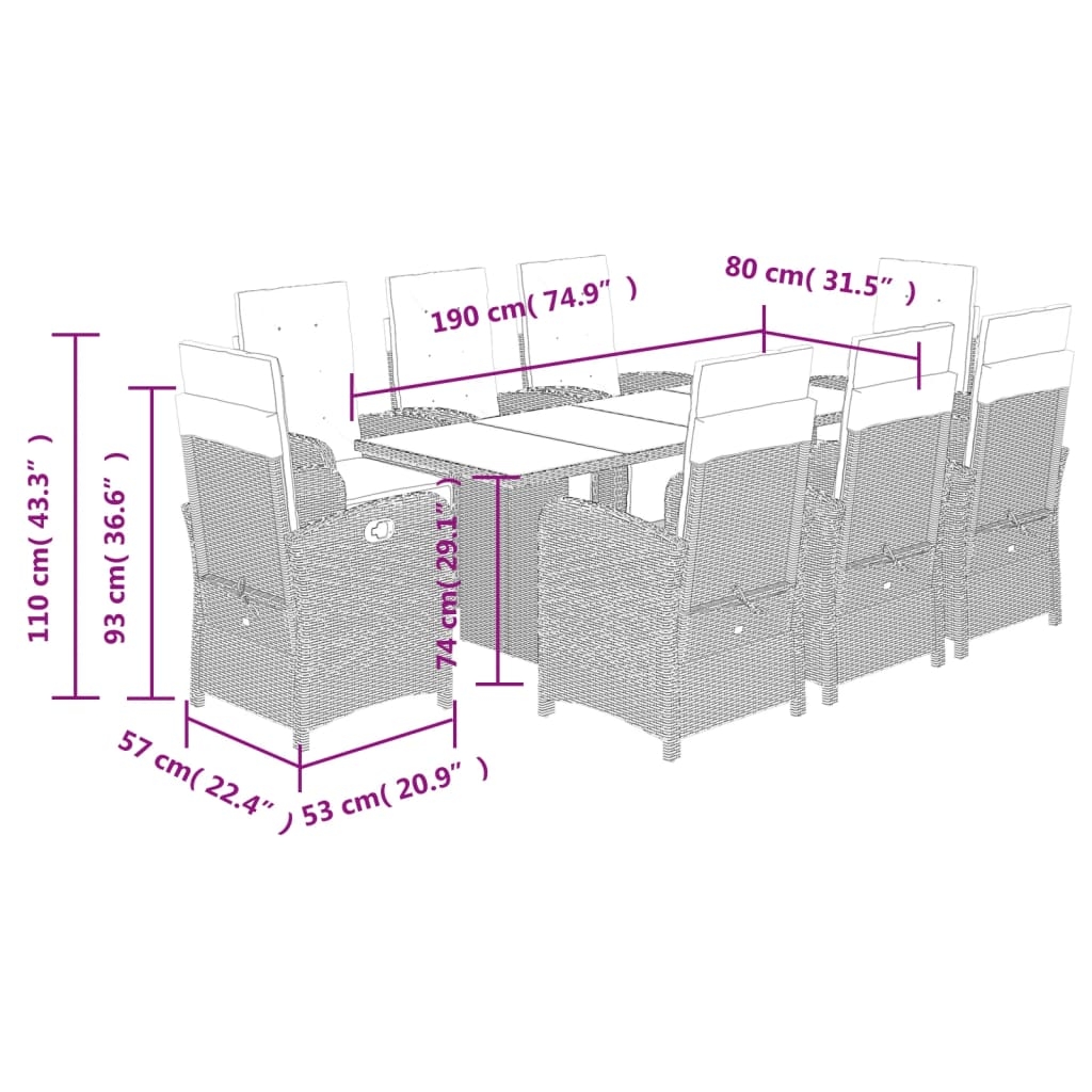 Genieße eine Tasse Kaffee oder unterhalte dich mit deiner Familie und deinen Freunden im Garten, Hinterhof oder auf dem Balkon an dieser bequemen Garten-Essgruppe! Langlebiges Material: PE-Rattan, auch als Poly Rattan bekannt, ist ein robustes, pflegeleichtes synthetisches Material, das die Optik von natürlichem Rattan aufweist. Es kennzeichnet sich durch ein geringes Eigengewicht und lässt sich einfach reinigen. Aufgrund seiner Haltbarkeit und Witterungsbeständigkeit wird es häufig bei der Herstellung von Gartenmöbeln verwendet.Verstellbare Rückenlehne und Fußstütze: Der Gartensessel ist mit einem Griff versehen. So kannst du die Rückenlehne und den Fußteil durch Ziehen des Griffs verstellen und sie danach schnell wieder in ihre ursprüngliche Position bringen.Bequemes Sitzerlebnis: Dieser Gartensessel mit dick gepolsterten Kissen bietet ein angenehmes Sitzgefühl.Abnehmbarer und waschbarer Bezug: Die Sitzkissen verfügen über abnehmbare Bezüge, die sich ganz einfach waschen und reinigen lassen. Dank der Klappen an der Rückseite können die Rückenkissen ganz einfach an den Rückenlehnen befestigt werden.Tischplatte aus Glas: Die Tischplatte des Gartentisches besteht aus starkem und langlebigem Hartglas, sodass sie leicht mit einem feuchten Tuch gereinigt werden kann und deinem Außenbereich einen Hauch von Eleganz verleiht. Gut zu wissen:Wir empfehlen dir, deine Gartenmöbel mit einer wasserdichten Hülle zu schützen, um lange Zeit eine ansprechende Optik aufzuweisen.