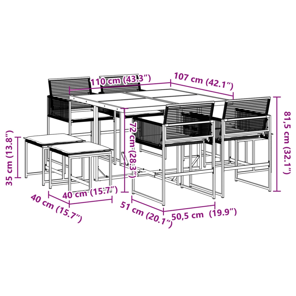 Diese Garten-Essgruppe ist eine ideale Wahl für Mahlzeiten im Freien oder einfach nur zum Entspannen im Garten, Hinterhof oder auf der Terrasse. Langlebiges Material: PE-Rattan, auch als Poly Rattan bekannt, ist ein robustes, pflegeleichtes synthetisches Material, das die Optik von natürlichem Rattan aufweist. Es kennzeichnet sich durch ein geringes Eigengewicht und lässt sich einfach reinigen. Aufgrund seiner Haltbarkeit und Witterungsbeständigkeit wird es häufig bei der Herstellung von Gartenmöbeln verwendet.Kompakte Aufbewahrung: Die Gartenstühle können platzsparend unter dem Tisch verstaut werden.Abnehmbarer und waschbarer Bezug: Diese Sitzkissen verfügen über abnehmbare Bezüge für einfaches Waschen und Pflegen.Tischplatte aus Glas: Die Tischplatte des Gartentisches besteht aus starkem und langlebigem Hartglas, sodass sie leicht mit einem feuchten Tuch gereinigt werden kann und deinem Außenbereich einen Hauch von Eleganz verleiht.Robuster und stabiler Rahmen: Dank des pulverbeschichteten Stahlrahmens ist das Möbelstück robust, stabil und für den täglichen Einsatz im Außenbereich geeignet.Gut zu wissen:Wir empfehlen dir, deine Gartenmöbel mit einer wasserdichten Hülle zu schützen, um lange Zeit eine ansprechende Optik aufzuweisen.