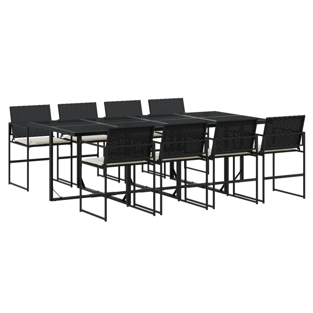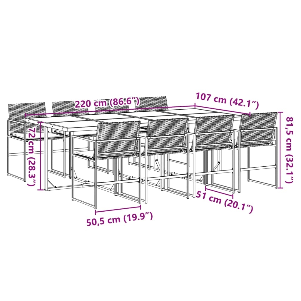 Diese Garten-Essgruppe ist eine ideale Wahl für Mahlzeiten im Freien oder einfach nur zum Entspannen im Garten, Hinterhof oder auf der Terrasse. Langlebiges Material: PE-Rattan, auch als Poly Rattan bekannt, ist ein robustes, pflegeleichtes synthetisches Material, das die Optik von natürlichem Rattan aufweist. Es kennzeichnet sich durch ein geringes Eigengewicht und lässt sich einfach reinigen. Aufgrund seiner Haltbarkeit und Witterungsbeständigkeit wird es häufig bei der Herstellung von Gartenmöbeln verwendet.Platzsparende Aufbewahrung: Dank der klappbaren Rückenlehnen lassen sich die Stühle unter dem Tisch verstauen, sodass die gesamte Essgruppe bei Nichtgebrauch eine platzsparende Würfelform bildet.Abnehmbarer und waschbarer Bezug: Diese Sitzkissen verfügen über abnehmbare Bezüge für einfaches Waschen und Pflegen.Tischplatte aus Glas: Die Tischplatte des Gartentisches besteht aus starkem und langlebigem Hartglas, sodass sie leicht mit einem feuchten Tuch gereinigt werden kann und deinem Außenbereich einen Hauch von Eleganz verleiht.Robuster und stabiler Rahmen: Dank des pulverbeschichteten Stahlrahmens ist das Möbelstück robust, stabil und für den täglichen Einsatz im Außenbereich geeignet.Gut zu wissen:Wir empfehlen dir, deine Gartenmöbel mit einer wasserdichten Hülle zu schützen, um lange Zeit eine ansprechende Optik aufzuweisen.