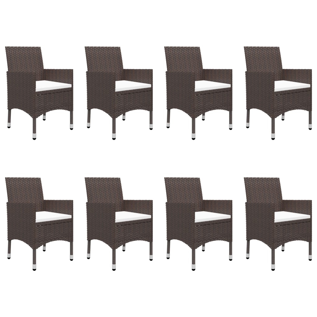 Genießen Sie Feiern mit dieser 9-teiligen Essgruppe! Mit diesem Ess-Set können Sie mühelos die Bedürfnisse Ihrer Gäste befriedigen und gleichzeitig eine perfekte Umgebung für das Essen im Freien schaffen! Diese Essgruppe aus UV-beständigem PE-Rattan und starkem, pulverbeschichtetem Stahlrahmen ist wetterbeständig und robust. Die Hartglas-Tischplatte schafft eine glatte und leicht zu reinigende Oberfläche. Jede Sitzfläche ist mit einem abnehmbaren, dick gepolsterten Kissen versehen, das Ihnen zusätzlichen Komfort beim Sitzen bietet. Alle Kissenbezüge sind mit Reißverschluss versehen und daher einfach abnehmbar. Zusätzlich macht die leichte Konstruktion jedes Teil einfach zu umstellen und zu transportieren. Hinweis: Wir empfehlen, das Set bei Regen, Schnee und Frost abzudecken.