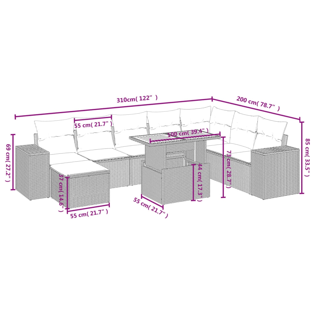 Diese Garten-Sofagarnitur ist die perfekte Ergänzung zu deinem Garten, deiner Terrasse oder deinem Innenhof. Sie bietet einen bequemen und einladenden Platz, um mit Familie und Freunden zu plaudern oder dich einfach nur zu entspannen und das Leben im Freien zu genießen. Langlebiges Material: PE-Rattan, auch als Poly Rattan bekannt, ist ein robustes, pflegeleichtes synthetisches Material, das die Optik von natürlichem Rattan aufweist. Es kennzeichnet sich durch ein geringes Eigengewicht und lässt sich einfach reinigen. Aufgrund seiner Haltbarkeit und Witterungsbeständigkeit wird es häufig bei der Herstellung von Gartenmöbeln verwendet.Verstellbare Tischplatte: Die Tischplatte lässt sich anheben, um den Gartentisch höher zu machen und ihn von einem Couchtisch in einen Esstisch zu verwandeln. Der Tisch eignet sich daher perfekt für Gäste oder Mahlzeiten im Freien.Abnehmbarer und waschbarer Bezug: Diese Sitzkissen verfügen über abnehmbare Bezüge für einfaches Waschen und Pflegen.Modulares Design: Dank des modularen Designs lassen sich die Gartenmöbel völlig flexibel und einfach umstellen, um deinen Außenbereich ganz individuell zu gestalten. Gut zu wissen:Wir empfehlen dir, deine Gartenmöbel mit einer wasserdichten Hülle zu schützen, um lange Zeit eine ansprechende Optik aufzuweisen.