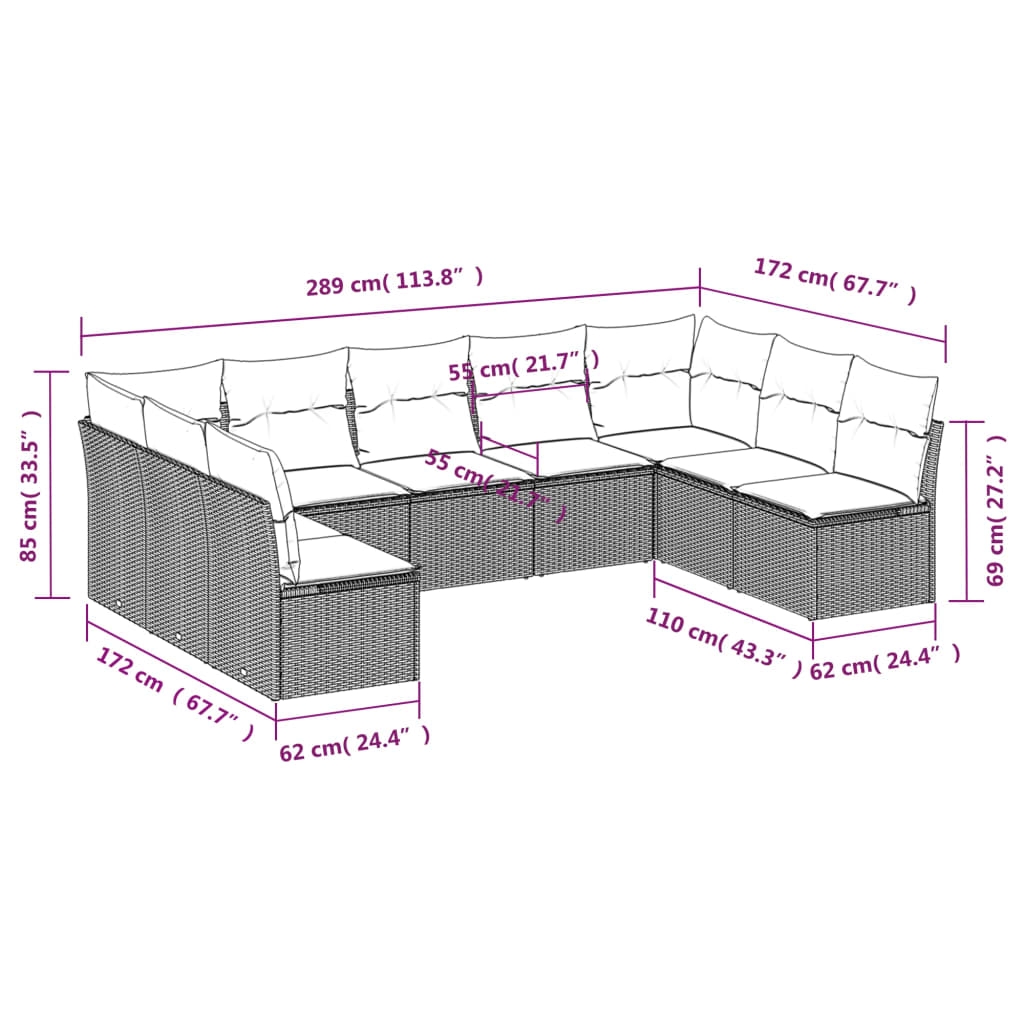 - Gesamtabmessungen des Sofas: 289 x 172 x 69 cm (B x T x H)