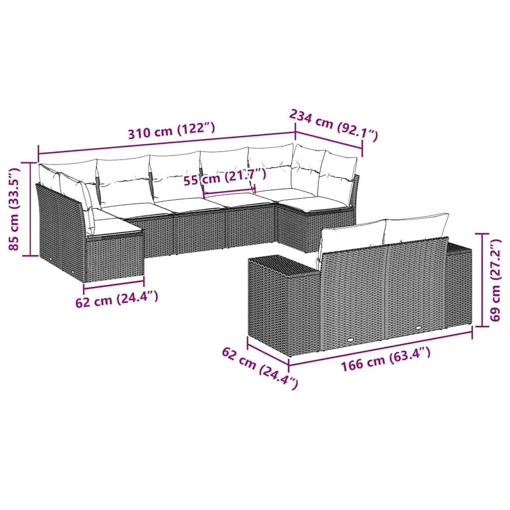 Diese Garten-Sofagarnitur ist die perfekte Ergänzung zu deinem Garten, deiner Terrasse oder deinem Innenhof. Sie bietet einen bequemen und einladenden Platz, um mit Familie und Freunden zu plaudern oder dich einfach nur zu entspannen und das Leben im Freien zu genießen. Langlebiges Material: PE-Rattan, auch als Poly Rattan bekannt, ist ein robustes, pflegeleichtes synthetisches Material, das die Optik von natürlichem Rattan aufweist. Es kennzeichnet sich durch ein geringes Eigengewicht und lässt sich einfach reinigen. Aufgrund seiner Haltbarkeit und Witterungsbeständigkeit wird es häufig bei der Herstellung von Gartenmöbeln verwendet.Stauraum mit wasserfestem Beutel: Das Gartensofa verfügen über ein Staufach unter der Sitzfläche, das mit einem wasserfesten Beutel zur Aufbewahrung von Kissen, Spielzeug und anderen Gegenständen versehen ist. Der Innenbeutel lässt sich mit Klettverschlüssen sicher und stabil an den Gartenmöbeln befestigen.Abnehmbarer und waschbarer Bezug: Diese Sitzkissen verfügen über abnehmbare Bezüge für einfaches Waschen und Pflegen.Modulares Design: Dank des modularen Designs lassen sich die Gartenmöbel völlig flexibel und einfach umstellen, um deinen Außenbereich ganz individuell zu gestalten. Gut zu wissen:Wir empfehlen dir, deine Gartenmöbel mit einer wasserdichten Hülle zu schützen, um lange Zeit eine ansprechende Optik aufzuweisen.