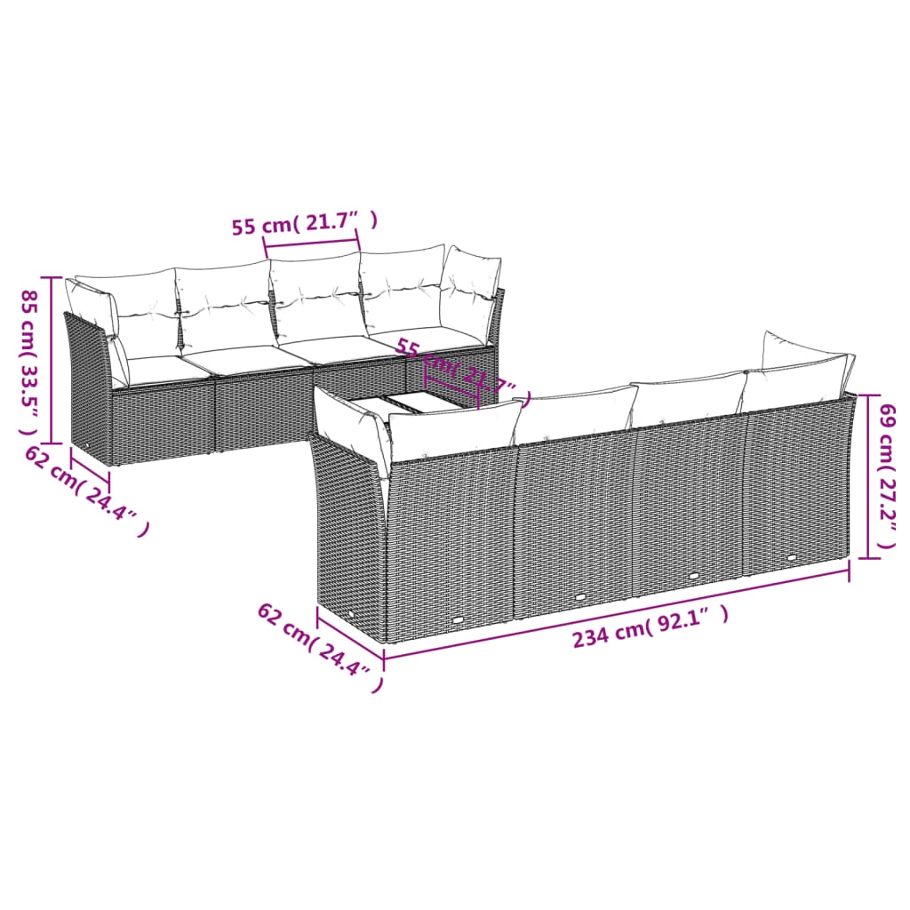Diese Garten-Sofagarnitur ist die perfekte Ergänzung zu deinem Garten, deiner Terrasse oder deinem Innenhof. Sie bietet einen bequemen und einladenden Platz, um mit Familie und Freunden zu plaudern oder dich einfach nur zu entspannen und das Leben im Freien zu genießen. Langlebiges Material: PE-Rattan, auch als Poly Rattan bekannt, ist ein robustes, pflegeleichtes synthetisches Material, das die Optik von natürlichem Rattan aufweist. Es kennzeichnet sich durch ein geringes Eigengewicht und lässt sich einfach reinigen. Aufgrund seiner Haltbarkeit und Witterungsbeständigkeit wird es häufig bei der Herstellung von Gartenmöbeln verwendet.Stauraum mit wasserfestem Beutel: Jedes Gartensofa verfügt über ein Staufach unter der Sitzfläche, das mit einem wasserfesten Beutel zur Aufbewahrung von Kissen, Spielzeug und anderen Gegenständen versehen ist. Die Kissen sind mit Bezügen versehen und lassen sich mit Klettverschlüssen fest und sicher an den Sofas befestigen.Tischplatte aus Glas: Die Tischplatte des Gartentisches besteht aus starkem und langlebigem Hartglas, sodass sie leicht mit einem feuchten Tuch gereinigt werden kann und deinem Außenbereich einen Hauch von Eleganz verleiht.Abnehmbarer und waschbarer Bezug: Diese Sitzkissen verfügen über abnehmbare Bezüge für einfaches Waschen und Pflegen.Modulares Design: Dank des modularen Designs lassen sich die Gartenmöbel völlig flexibel und einfach umstellen, um deinen Außenbereich ganz individuell zu gestalten. Gut zu wissen:Wir empfehlen dir, deine Gartenmöbel mit einer wasserdichten Hülle zu schützen, um lange Zeit eine ansprechende Optik aufzuweisen.