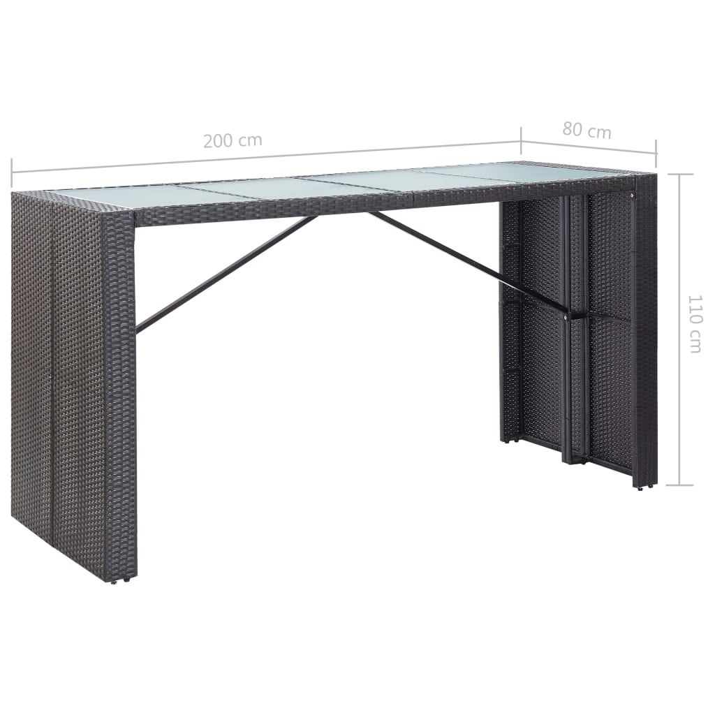 Dieses Gartenbar-Set aus Poly Rattan wird ein Blickfang in Ihrem Garten sein. Dank des wasserfesten PE-Rattans ist das Terrassen-Barset pflegeleicht, strapazierfähig und für den täglichen Gebrauch im Freien geeignet. Das Set kommt mit einem modernen Tisch, der zu unseren eleganten Stühlen perfekt passt. Die pulverbeschichteten Stahlrahmen machen das Set stabil und langlebig. Da die Konstruktion jedoch auch leicht ist, lassen sich alle Artikel spielend umher bewegen, um in jede Einrichtung zu passen. Das Set wird zudem samt äußerst bequemen, dick gepolsterten Sitzkissen geliefert, die für den höchsten Sitzkomfort sorgen. Die pflegeleichten Polyesterbezüge können auch abgenommen und gewaschen werden. Das Set ist kinderleicht zu montieren. Hinweis: Wir empfehlen, das Set bei Regen, Schnee und Frost abzudecken, um eine lange Lebensdauer zu gewährleisten.