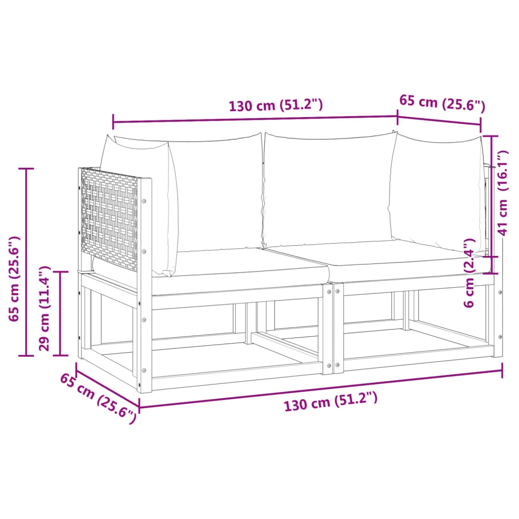 Diese Gartensofas aus Holz mit Kissen sind eine großartige Ergänzung für deinen Garten, deine Terrasse oder deinen Innenhof, um mit Familie und Freunden zu plaudern oder einfach nur das Wetter zu genießen. Robustes und stabiles Gestell: Massives Akazienholz ist für seine Festigkeit und Haltbarkeit bekannt. Seine vielfältige Farbe und seine einzigartige Maserung verleihen ihm eine attraktive Optik. Dank seiner ausgezeichneten Stabilität und Witterungsbeständigkeit eignet es sich ideal für die Herstellung von Innen- und Außenmöbeln. Bequemes Sitzerlebnis: Dieser Gartensessel mit dick gepolsterten Kissen bietet ein angenehmes Sitzgefühl.Gut belüftet und Vermeidung von Wasseransammlungen: Das Latten-Design sorgt für eine optimale Luftzirkulation und verhindert effektiv, dass sich das Wasser auf der Tischplatte ansammelt, wodurch dieses Gartenmöbel trocken und so länger haltbar bleibt.Abnehmbarer und waschbarer Bezug: Diese Sitzkissen verfügen über abnehmbare Bezüge für einfaches Waschen und Pflegen.Modulares Design: Dank des modularen Designs lassen sich diese Gartenmöbel völlig flexibel und einfach umstellen, um deinen Außenbereich ganz individuell zu gestalten. Gut zu wissen:Wir empfehlen dir, deine Gartenmöbel mit einer wasserdichten Hülle zu schützen, um lange Zeit eine ansprechende Optik aufzuweisen.