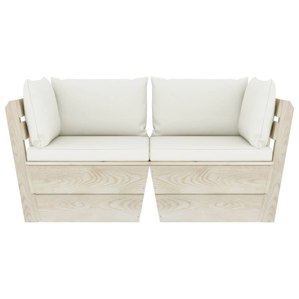 Dieses trendige 2-Sitzer-Garten-Palettensofa mit Kissen ist eine ausgezeichnete Wahl, um sich zu entspannen und das Wetter zu genießen, ein Nickerchen zu machen oder mit Ihrer Familie oder Freunden zu plaudern. Mit einem zeitlosen Palettendesign verleiht dieses Holz-Sofa Ihrer Terrasse, Ihrem Garten oder Ihrem Wohnzimmer einen Hauch von rustikalem Charme. Das Gartensofa besteht aus imprägniertem Fichtenholz und ist somit langlebig und stabil. Dieses Sofa hat eine solide Konstruktion und erfordert wenig Wartung. Dank der Kissen aus 100% Polyester und der dicken Polsterung sind die Palettenkissen weich und bieten höchsten Komfort. Es ist ideal für Familienfilmabende, Videospiele, uvm. Bitte beachten Sie: Holz ist ein Naturprodukt und kann leichte Unvollkommenheiten aufweisen.