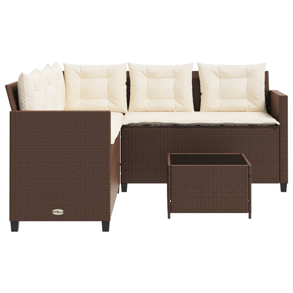 Dieses Gartensofa in L-Form ist die perfekte Ergänzung zu deinem Garten, deiner Terrasse oder deinem Innenhof. Es bietet einen bequemen und einladenden Platz, um mit Familie und Freunden zu plaudern oder dich einfach nur zu entspannen und das Leben im Freien zu genießen. Langlebiges Material: PE-Rattan, auch als Poly Rattan bekannt, ist ein robustes, pflegeleichtes synthetisches Material, das die Optik von natürlichem Rattan aufweist. Es kennzeichnet sich durch ein geringes Eigengewicht und lässt sich einfach reinigen. Aufgrund seiner Haltbarkeit und Witterungsbeständigkeit wird es häufig bei der Herstellung von Gartenmöbeln verwendet.Bequemes Sitzerlebnis: Dieser Gartensessel mit dick gepolsterten Kissen bietet ein angenehmes Sitzgefühl.Tischplatte aus Glas: Die Tischplatte des Gartentisches besteht aus starkem und langlebigem Hartglas, sodass sie leicht mit einem feuchten Tuch gereinigt werden kann und deinem Außenbereich einen Hauch von Eleganz verleiht.Abnehmbarer und waschbarer Bezug: Diese Sitzkissen verfügen über abnehmbare Bezüge für einfaches Waschen und Pflegen.Robuster und stabiler Rahmen: Dank des pulverbeschichteten Stahlrahmens ist das Möbelstück robust, stabil und für den täglichen Einsatz im Außenbereich geeignet. Gut zu wissen:Wir empfehlen dir, deine Gartenmöbel mit einer wasserdichten Hülle zu schützen, um lange Zeit eine ansprechende Optik aufzuweisen.