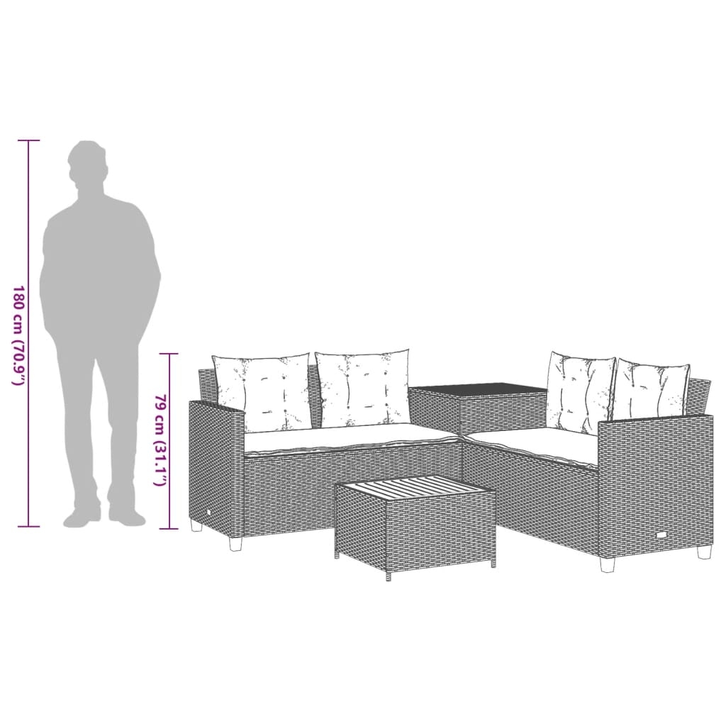Dieses Gartensofa in L-Form ist die perfekte Ergänzung zu deinem Garten, deiner Terrasse oder deinem Innenhof. Es bietet einen bequemen und einladenden Platz, um mit Familie und Freunden zu plaudern oder dich einfach nur zu entspannen und das Leben im Freien zu genießen. Langlebiges Material: PE-Rattan, auch als Poly Rattan bekannt, ist ein robustes, pflegeleichtes synthetisches Material, das die Optik von natürlichem Rattan aufweist. Es kennzeichnet sich durch ein geringes Eigengewicht und lässt sich einfach reinigen. Aufgrund seiner Haltbarkeit und Witterungsbeständigkeit wird es häufig bei der Herstellung von Gartenmöbeln verwendet.Stauraum mit wasserfestem Innenbeutel: Der Garten-Beistelltisch verfügt über ein Innenfach, das mit einem wasserfesten Beutel zur Aufbewahrung von Kissen, Spielzeug und anderen Gegenständen versehen ist. Die Kissen sind mit Bezügen versehen und lassen sich mittels Klettverschlüssen fest und sicher an den Sofas befestigen.Bequemes Sitzerlebnis: Dieser Gartensessel mit dick gepolsterten Kissen bietet ein angenehmes Sitzgefühl.Abnehmbarer und waschbarer Bezug: Diese Sitzkissen verfügen über abnehmbare Bezüge für einfaches Waschen und Pflegen.Stabile und pflegeleichte Tischplatte: Dieser Gartentisch besitzt eine Tischplatte aus Akazienholz, die robust und langlebig ist und sich leicht mit einem feuchten Tuch reinigen lässt. Gut zu wissen:Wir empfehlen dir, deine Gartenmöbel mit einer wasserdichten Hülle zu schützen, um lange Zeit eine ansprechende Optik aufzuweisen.