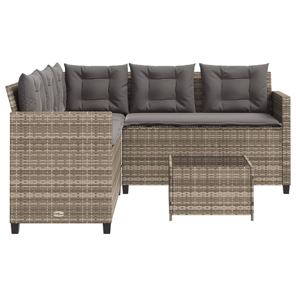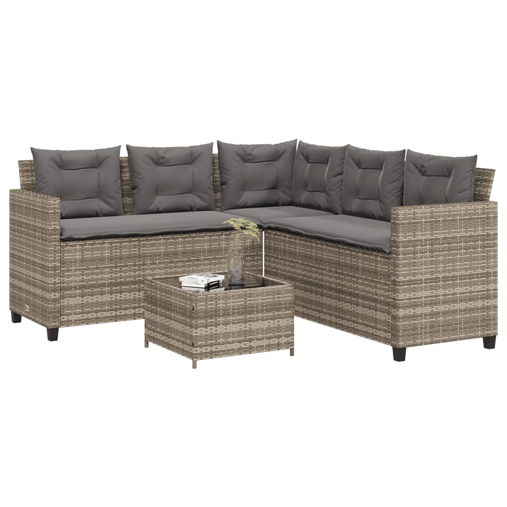 Dieses Gartensofa in L-Form ist die perfekte Ergänzung zu deinem Garten, deiner Terrasse oder deinem Innenhof. Es bietet einen bequemen und einladenden Platz, um mit Familie und Freunden zu plaudern oder dich einfach nur zu entspannen und das Leben im Freien zu genießen. Langlebiges Material: PE-Rattan, auch als Poly Rattan bekannt, ist ein robustes, pflegeleichtes synthetisches Material, das die Optik von natürlichem Rattan aufweist. Es kennzeichnet sich durch ein geringes Eigengewicht und lässt sich einfach reinigen. Aufgrund seiner Haltbarkeit und Witterungsbeständigkeit wird es häufig bei der Herstellung von Gartenmöbeln verwendet.Bequemes Sitzerlebnis: Dieser Gartensessel mit dick gepolsterten Kissen bietet ein angenehmes Sitzgefühl.Tischplatte aus Glas: Die Tischplatte des Gartentisches besteht aus starkem und langlebigem Hartglas, sodass sie leicht mit einem feuchten Tuch gereinigt werden kann und deinem Außenbereich einen Hauch von Eleganz verleiht.Abnehmbarer und waschbarer Bezug: Diese Sitzkissen verfügen über abnehmbare Bezüge für einfaches Waschen und Pflegen.Robuster und stabiler Rahmen: Dank des pulverbeschichteten Stahlrahmens ist das Möbelstück robust, stabil und für den täglichen Einsatz im Außenbereich geeignet. Gut zu wissen:Wir empfehlen dir, deine Gartenmöbel mit einer wasserdichten Hülle zu schützen, um lange Zeit eine ansprechende Optik aufzuweisen.