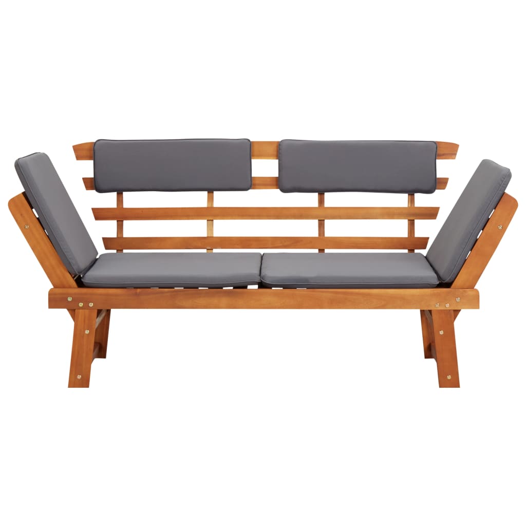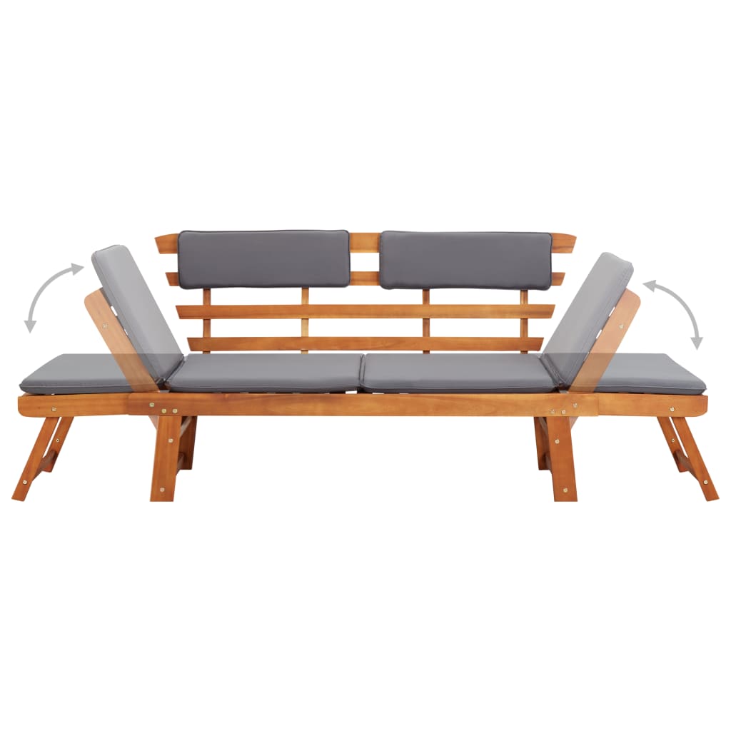 Diese Sonnenliege/Gartenbank aus Holz kombiniert Stil und Funktionalität und wird der Mittelpunkt Ihres Gartens oder Ihrer Terrasse sein. Die Sonnenliege lässt sich dank verstellbarer Seiten schnell und einfach von einer Bank in ein Tagesbett verwandeln. Beide Seiten sind mit zusätzlichen Beinen versehen, um für zusätzlichen Halt zu sorgen. Die dicken und abnehmbaren Rücken-, Sitz- und Armpolster bieten hohen Sitz- und Liegekomfort. Die Kissenbezüge lassen sich leicht abnehmen und waschen. Das Lattenrost des Bettes sorgt für eine gute Belüftung. Diese Sonnenliege / Gartenbank besteht aus Akazienholz, einem tropischen Hartholz, das witterungsbeständig ist und mit einer leichten Ölbeschichtung versehen ist. Daher ist es für den Außenbereich bestens geeignet. Die Sonnenliege ist einfach zu montieren.