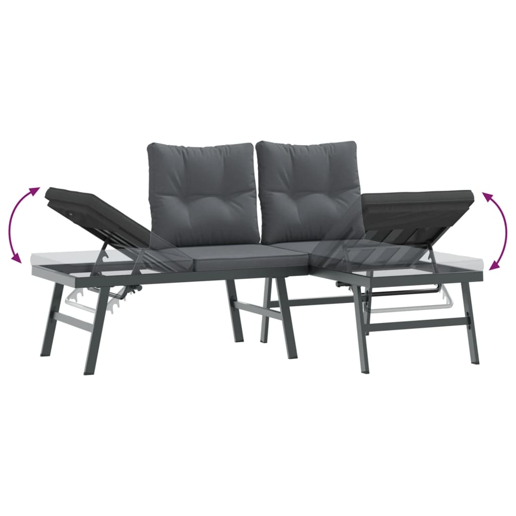 Diese Gartenbank eignet sich perfekt für den Außenbereich und wird ein echter Hingucker in deinem Garten, Hinterhof bzw. auf deiner Terrasse sein. Robustes und stabiles Gestell: Der pulverbeschichtete Stahlgestell ist stark, stabil, langlebig sowie korrosions- und wetterbeständig, um eine lang anhaltende Leistung zu gewährleisten.Verstellbare Seitenteile: Die Seitenteile jedes Sofas können angehoben werden, wodurch das Sofa in eine bequeme Liege zum Entspannen verwandelt wird. Die verstellbare Sitzfläche lässt sich 3-fach verstellen, um unterschiedlichen Bedürfnissen gerecht zu werden, sei es beim Lesen, Sonnenbaden oder Schlafen.Bequemes Sitzerlebnis: Dank des dick gepolsterten Kissens bietet dieser Gartenhocker höchsten Sitzkomfort.Abnehmbarer und waschbarer Bezug: Diese Sitzkissen verfügen über abnehmbare Bezüge für einfaches Waschen und Pflegen. Gut zu wissen:Wir empfehlen dir, deine Gartenmöbel mit einer wasserdichten Hülle zu schützen, um lange Zeit eine ansprechende Optik aufzuweisen.