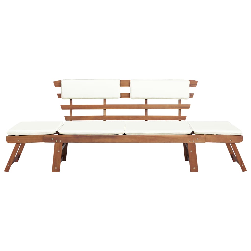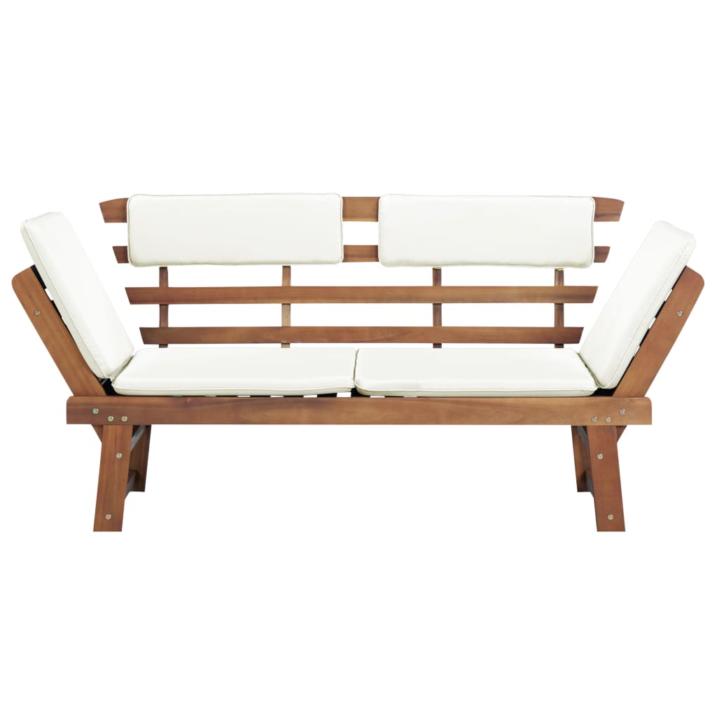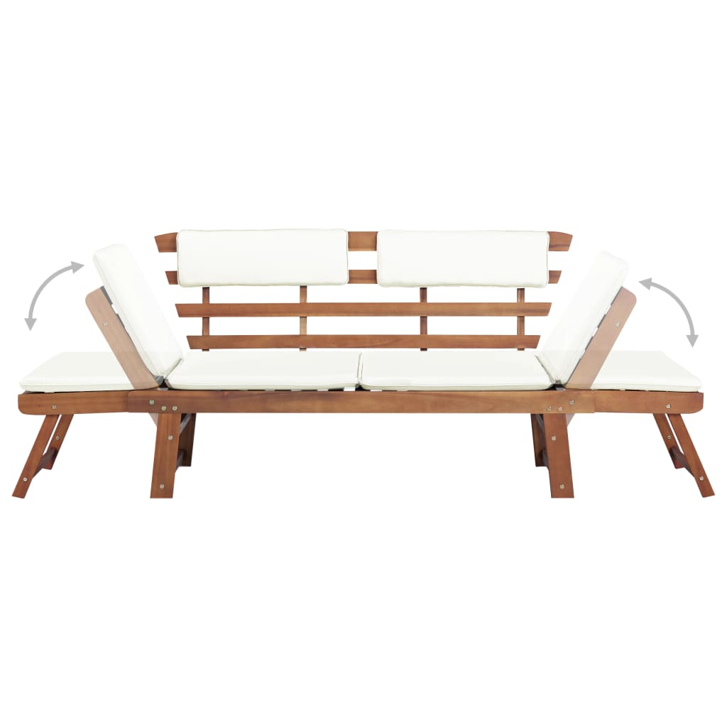 Diese Sonnenliege/Gartenbank aus Holz kombiniert Stil und Funktionalität und wird der Mittelpunkt Ihres Gartens oder Ihrer Terrasse sein. Der Sunlounger kann dank der verstellbaren Seiten ganz leicht in ein Tagesbett und wieder zurück verwandelt werden. Das dicke, einklappbare Rückenteil und die Sitzpolster sorgen für hohen Sitz- und Liegekomfort. Die Sitzpolsterbezüge können leicht abgenommen und gewaschen werden. Die Sonnenliege/Gartenbank ist aus Akazienholz hergestellt worden, einem tropischen Hartholz, welches wetterbeständig ist. Es ist mit Holzöl behandelt worden. Daher eignet es sich für den Außeneinsatz.