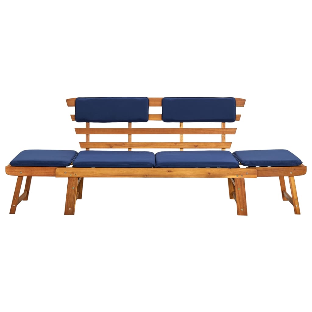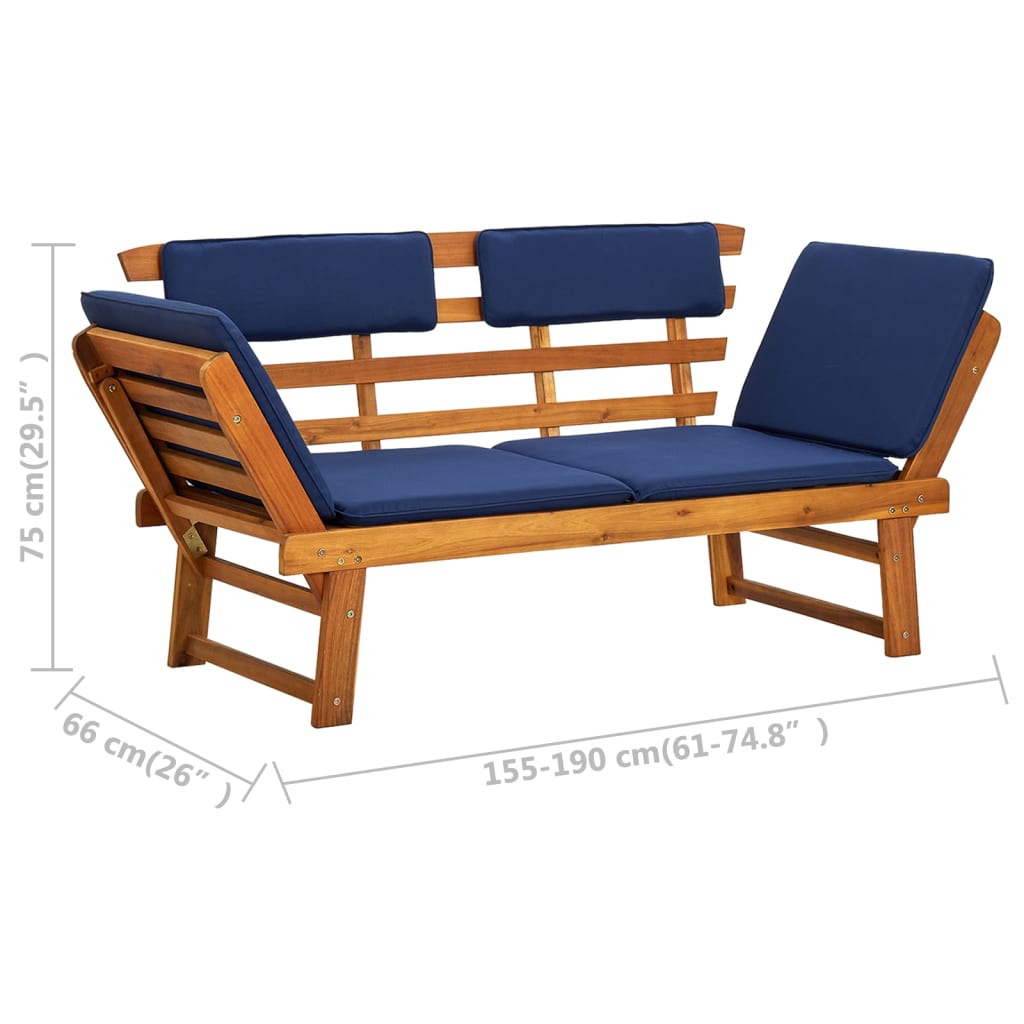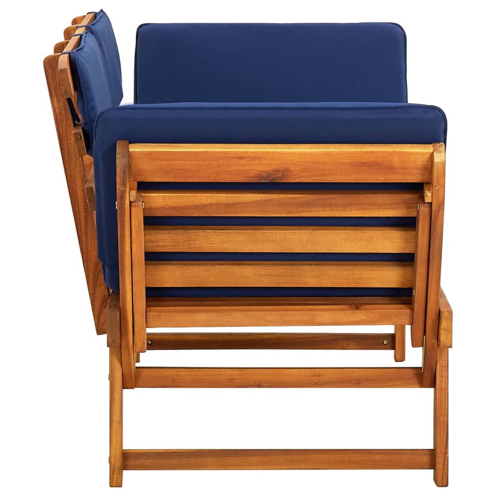 Diese Sonnenliege/Gartenbank aus Holz kombiniert Stil und Funktionalität und wird der Mittelpunkt Ihres Gartens oder Ihrer Terrasse sein. Die Sonnenliege lässt sich dank der verstellbaren Seitenteile schnell und einfach von einer Bank zu einer Liege und wieder zurück umbauen. Die dicken, abnehmbaren Rücken- und Sitzkissen sorgen für höchsten Sitz- und Liegekomfort. Die Kissenbezüge können leicht abgenommen und gewaschen werden. Diese Bank besteht aus massivem Akazienholz, einem Hartholz mit dichter Maserung, das witterungsbeständig und für den Außenbereich geeignet ist.