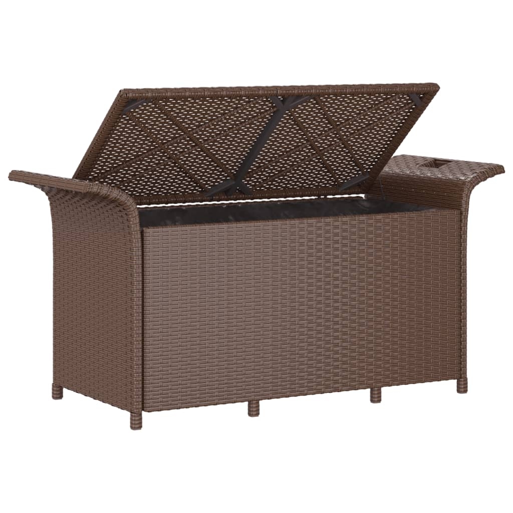 Diese trendige Gartenbank mit Kissen, die Stil mit Funktion vereint, wird mit Sicherheit das Herzstück deines Gartens, deiner Terrasse und jedes anderen Wohnraums sein. Langlebiges Material: PE-Rattan, auch als Poly Rattan bekannt, ist witterungsbeständig und pflegeleicht. Seine Oberfläche weist lange Zeit eine ansprechende Optik auf. Es ist kostengünstiger als andere Materialien und bietet gleichzeitig hohe Qualität, Komfort und einen ästhetisches Look.Reichlich Stauraum: Die Garten-Sitzbank bietet reichlich Stauraum im Inneren, damit du deine Sachen gut organisiert und in Reichweite aufbewahren kannst. Die wasserfeste PVC-Auskleidung hält das Innere der Box trocken. Der Haken hilft, den Deckel beim Öffnen zu halten.Robuster und stabiler Rahmen: Der pulverbeschichtete Stahlrahmen macht die Gartenbank robust und stabil und somit für den täglichen Einsatz im Freien bestens geeignet.Bequem: Das dick gepolsterte Sitzkissen sorgt für ultimativen Sitzkomfort.Vielseitig einsetzbar: Die Outdoor-Bank sorgt mit ihrem außergewöhnlichen Design für ein schönes Gesamtbild, das sich mühelos in jede Umgebung einfügt. Hinweis:Wir empfehlen dir, deine Gartenmöbel mit einer wasserdichten Hülle zu schützen, um lange Zeit eine ansprechende Optik aufzuweisen.