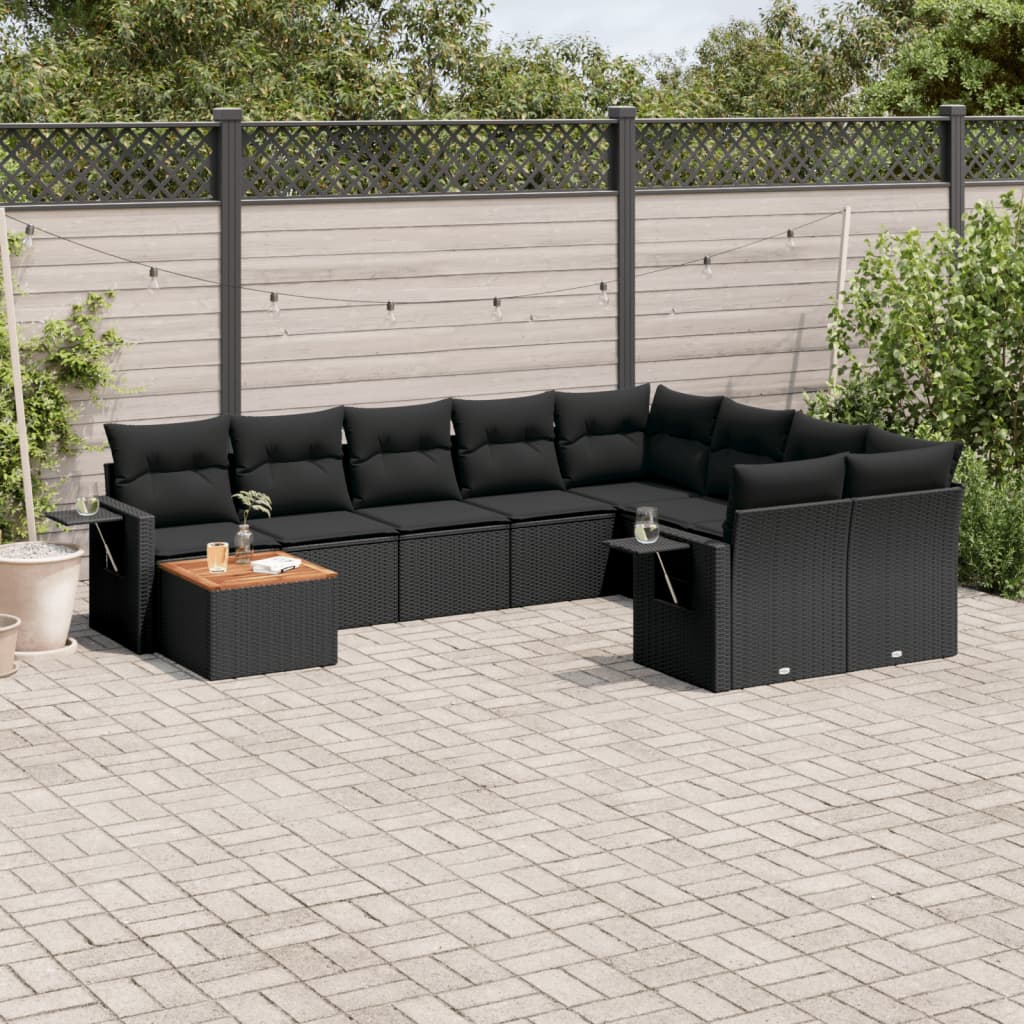 Diese Garten-Sofagarnitur ist die perfekte Ergänzung zu deinem Garten, deiner Terrasse oder deinem Innenhof. Sie bietet einen bequemen und einladenden Platz, um mit Familie und Freunden zu plaudern oder dich einfach nur zu entspannen und das Leben im Freien zu genießen. Langlebiges Material: PE-Rattan, auch als Poly Rattan bekannt, ist ein robustes, pflegeleichtes synthetisches Material, das die Optik von natürlichem Rattan aufweist. Es kennzeichnet sich durch ein geringes Eigengewicht und lässt sich einfach reinigen. Aufgrund seiner Haltbarkeit und Witterungsbeständigkeit wird es häufig bei der Herstellung von Gartenmöbeln verwendet.Praktischer Beistelltisch: Dieses Gartensofa verfügt über klappbare Ablagen mit Gasfedern an den Armlehnen, auf denen du verschieden Sachen griffbereit aufbewahren kannst.Stabile und pflegeleichte Tischplatte: Dieser Gartentisch besitzt eine Tischplatte aus Akazienholz, die robust und langlebig ist und sich leicht mit einem feuchten Tuch reinigen lässt.Abnehmbarer und waschbarer Bezug: Diese Sitzkissen verfügen über abnehmbare Bezüge für einfaches Waschen und Pflegen.Modulares Design: Dank des modularen Designs lassen sich die Gartenmöbel völlig flexibel und einfach umstellen, um deinen Außenbereich ganz individuell zu gestalten. Gut zu wissen:Wir empfehlen dir, deine Gartenmöbel mit einer wasserdichten Hülle zu schützen, um lange Zeit eine ansprechende Optik aufzuweisen.
